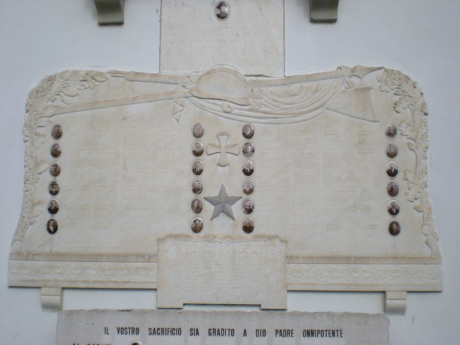 - ISCRIZIONI al centro, a tutto campo - ALZAPIEDI AGOSTINO ALZAPIEDI GIUSEPPE/ ALZAPIEDI CELESTE ARISTONI GIUSEPPE/ ALZAPIEDI ANTONIO BARBORINI GIROLAMO/ ALZAPIEDI GIOVANNI BERTORELLI FRANCESCO/ ALZAPIEDI GIUSEPPE BORNUZZI ALFREDO/ BERTI ANGELO CHIESA TRANQUILLO/ BACCARINI DOMENICO/ CONTI GIOVANNI SOZZI GAETANO/ FESTINI GUGLIELMO TOMA GIUSEPPE/ MENEGALLI GIOVANNI TORTOROLI LUIGI/ MISURACCHI GIOVANNI PELLEGRINI PIO/ OPPICI GIOVANNI VIGNOLETTI CARLO/ SARTI GIOVANNI BONDI GIUSEPPE/ MISURACCHI COSTANTE/ LA PIEVE DI GUSALIGGIO/ VUOLE QUI RICORDATI/ I NOMI DEI PRODI SUOI FIGLI/ CADUTI NELL'ULTIMA GUERRA ITALICA/ CON LA FEDE IN CRISTO/ PER OSSEQUIO AL DOVERE DI PATRIA/ 1915-1918 - lettere capitali - a incisione -