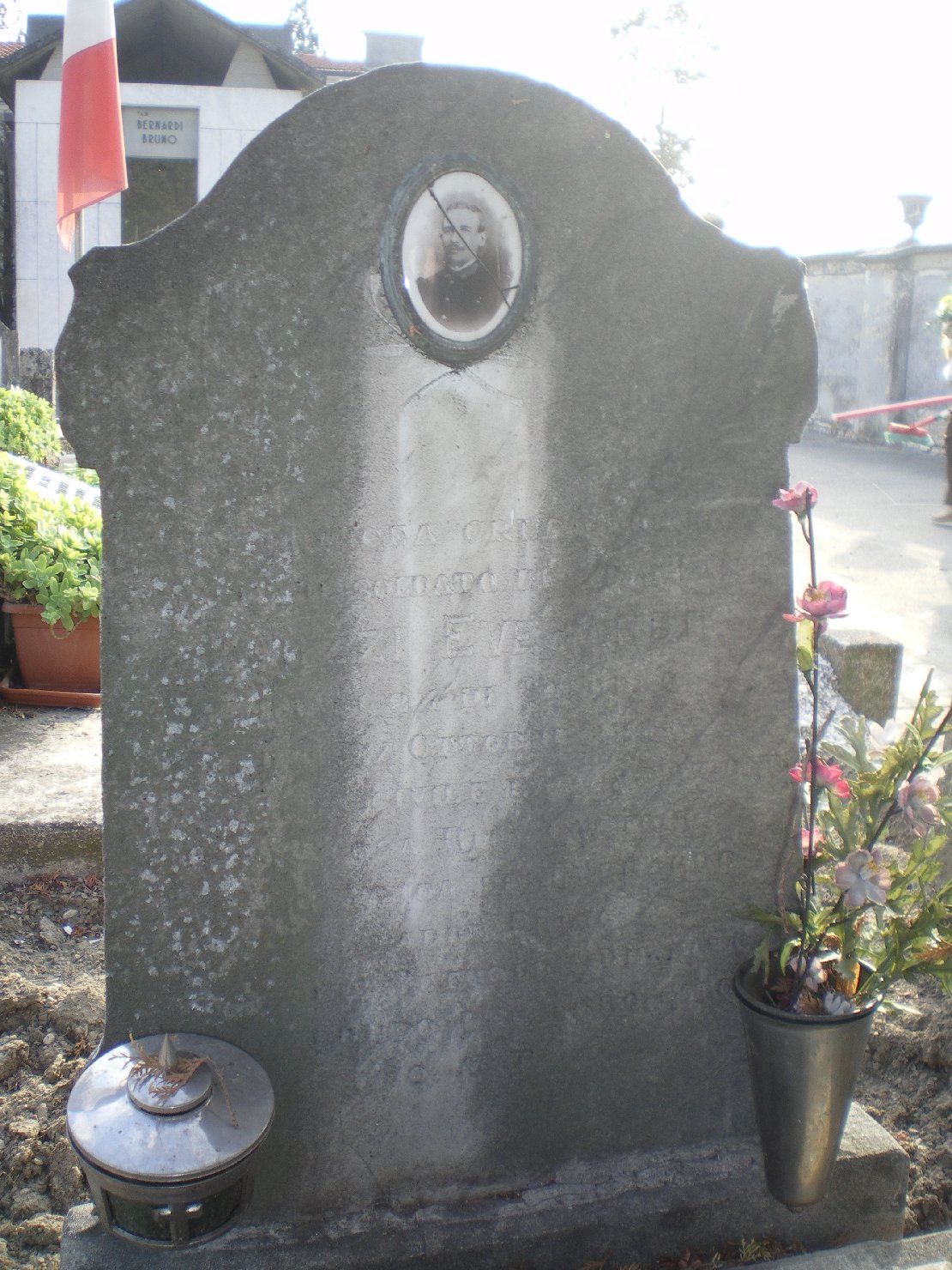 - ISCRIZIONI al centro, a tutto campo - [- - -] CRUDELE/ [- - -] SOLDATO DI [- - -]/ [B]UZZI EVERARDO/ [- - -] DI [- - -]/ [- - -] OTTOBRE 1917/ [- - -] CIVILE E [- - -]/ [- - - - - -]/ [- - - - -]/ Q. M. P - lettere capitali/ numeri arabi - a solchi -