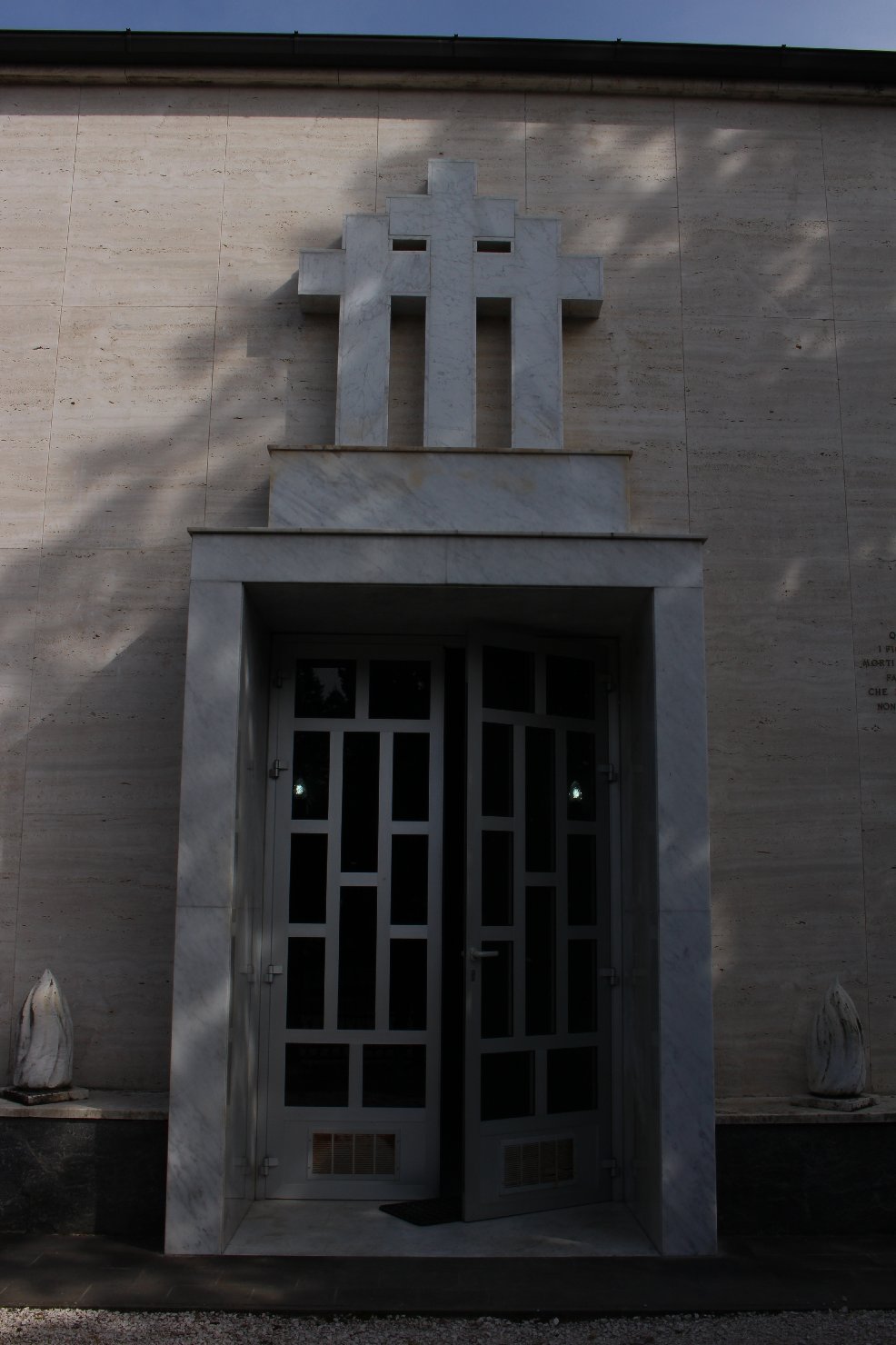 - ISCRIZIONI facciata, a destra - QUI RIPOSANO/ I FIGLI DEL POPOLO/ MORTI IN TUTTE LE GUERRE/ FA O GENTE VIVA/ CHE IL LORO SACRIFICIO/ NON SIA STATO VANO - capitale - a caratteri applicati -