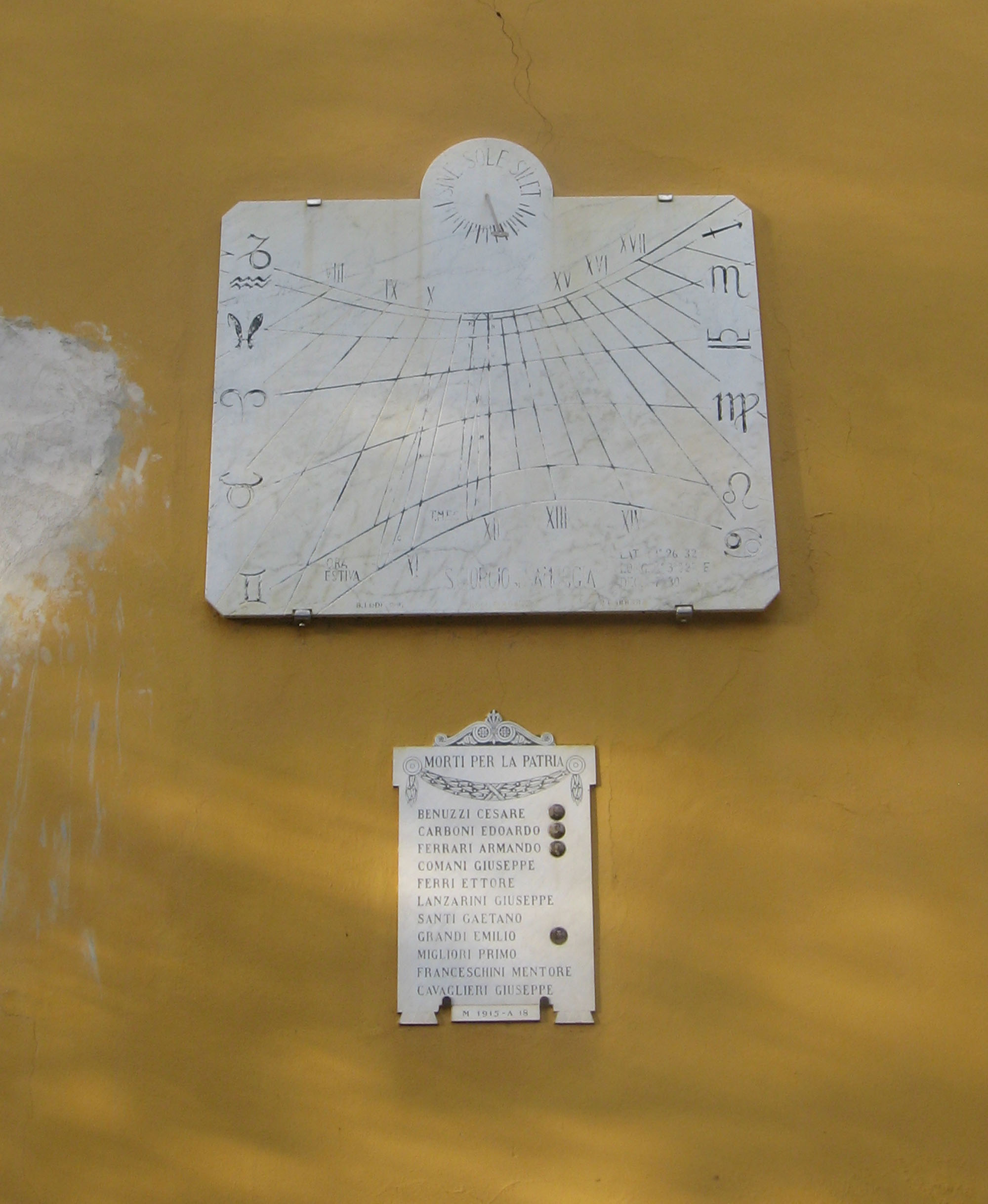- ISCRIZIONI sulla lapide, a tutto campo - MORTI PER LA PATRIA/ BENUZZI CESARE/ CARBONI EDOARDO/ FERRARI ARMANDO/ COMANI GIUSEPPE/ FERRI ETTORE/ LANZARINI GIUSEPPE/ SANTI GAETANO/ GRANDI EMILIO/ MIGLIORI PRIMO/ FRANCESCHINI MENTORE/ CAVAGLIERI GIUSEPPE/ M. 1915 – A. 18 - capitale -