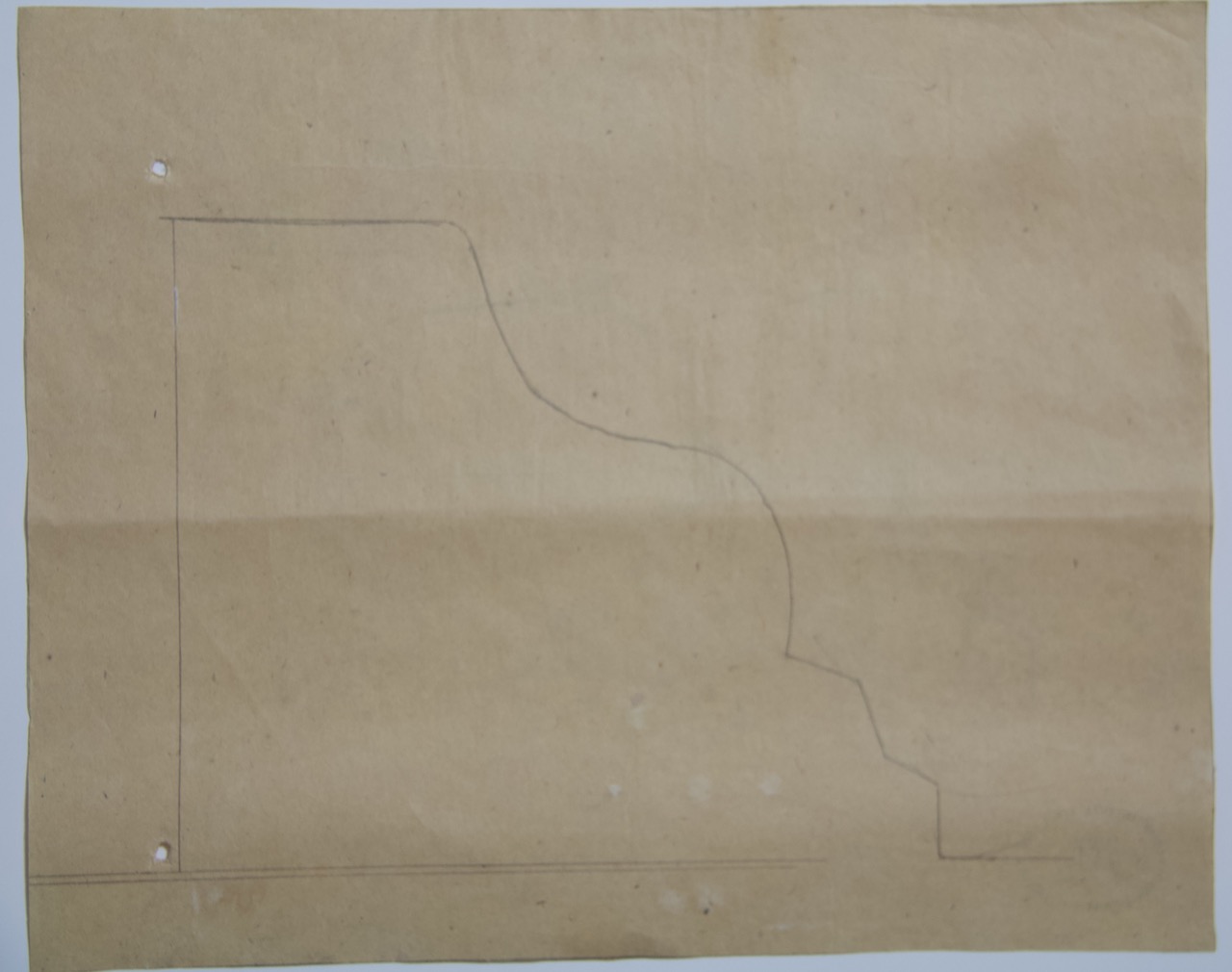 Disegno a matita su carta da pacco. Sagoma del risvolto della cornice esterna della basilica di San Vitale di Ravenna, sia sul recto che sul verso