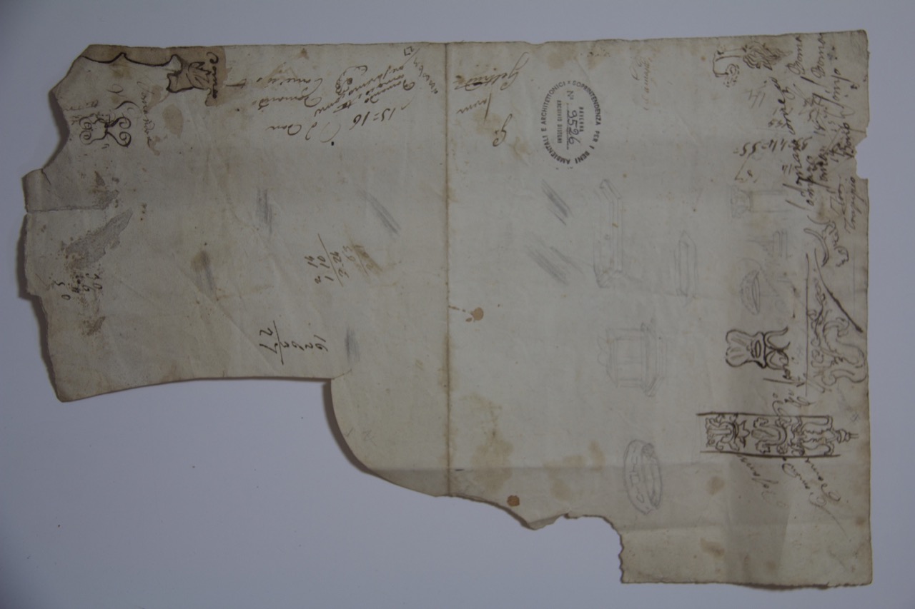 Disegno a matita su carta da disegno. Parte della decorazione della cupola del Battistero Neoniano di Ravenna, con le zone restaurate