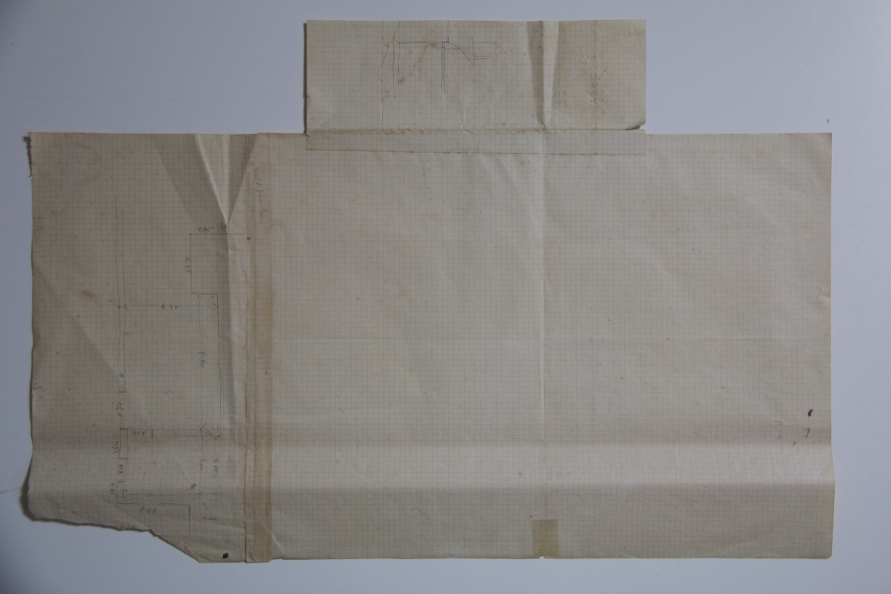 Disegno a matita su carta a quadretti. Rilievo in alzato della parte absidale esterna, prima della demolizione delle superfetazioni della basilica di San Giovanni Evangelista di Ravenna (esterno verso levante). Sul verso appunti