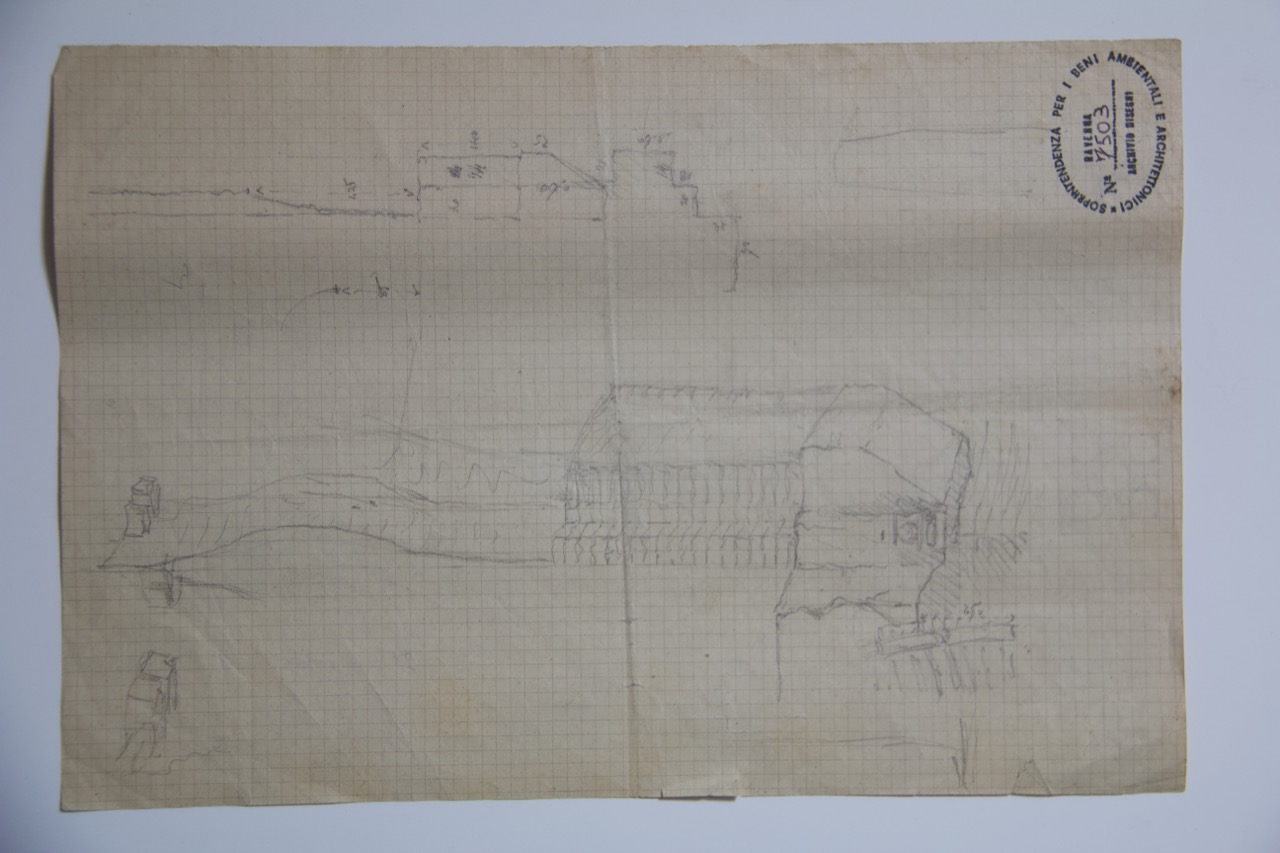 Disegno a matita su carta a quadretti. Rilievi dell'abside, anche sul verso, della basilica di San Giovanni Evangelista di Ravenna