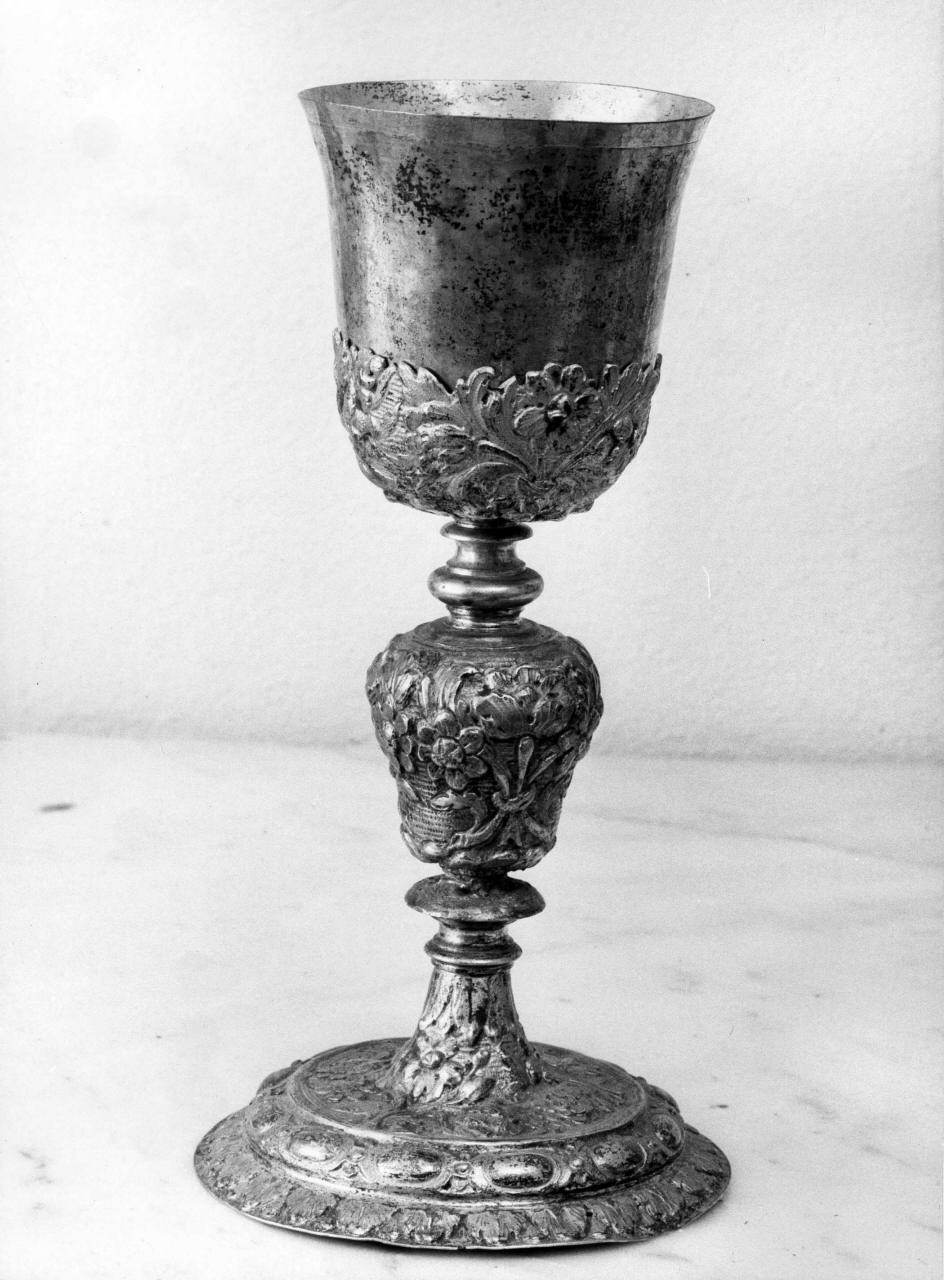 - NOTIZIE STORICO CRITICHE I motivi a grossi ovuli che ornano la base e il grosso nodo che comprende quasi tutto il fusto fanno di questo calice un prodotto di argenteria liturgica secentesca