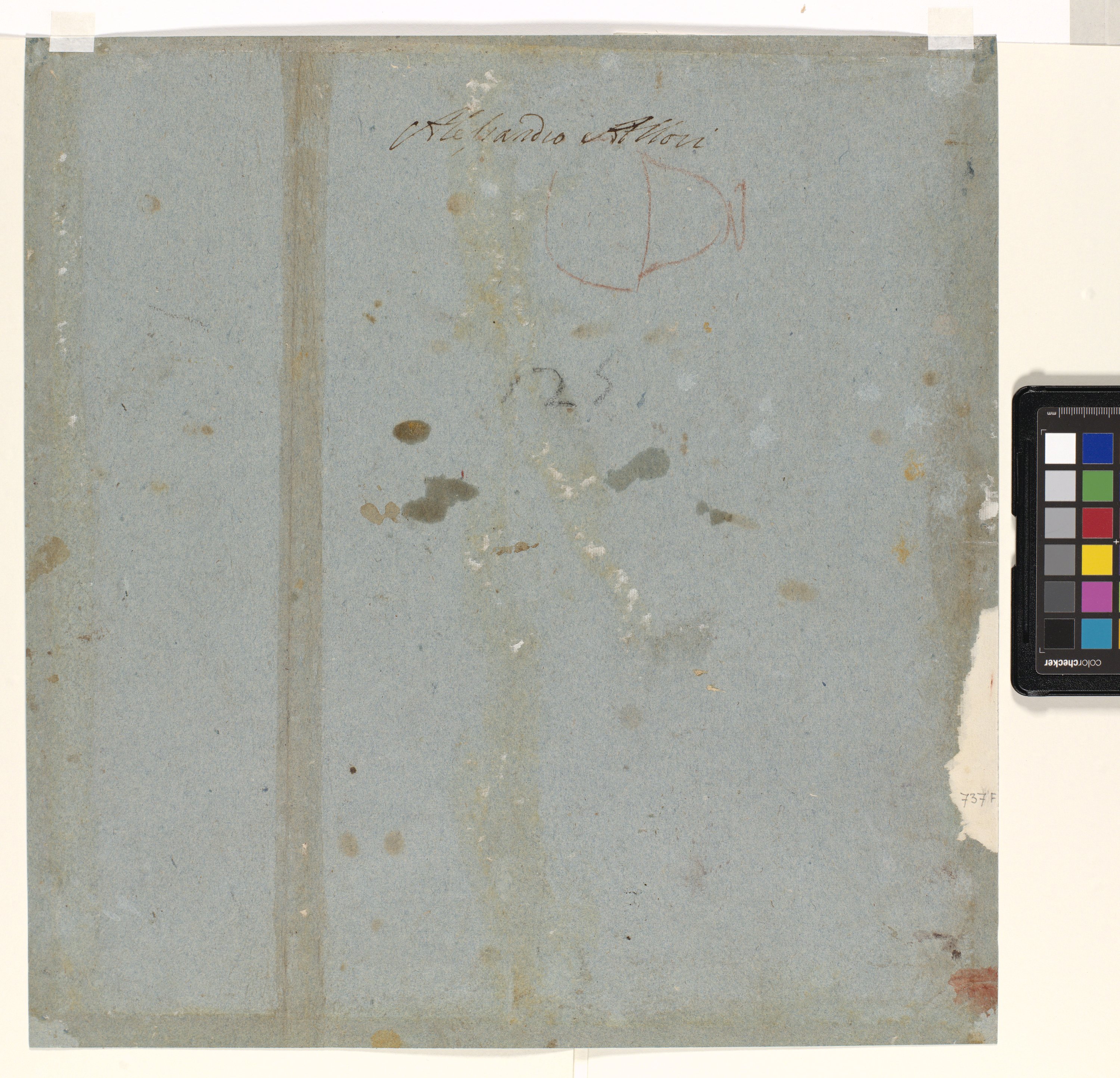 - ISCRIZIONI sul recto, lungo il margine destro - NEL ANNO M.D.XCVII / ALESSANDRO BRONZINO AL[]DI / CRISTOFANO ALLORI DIPINGE -