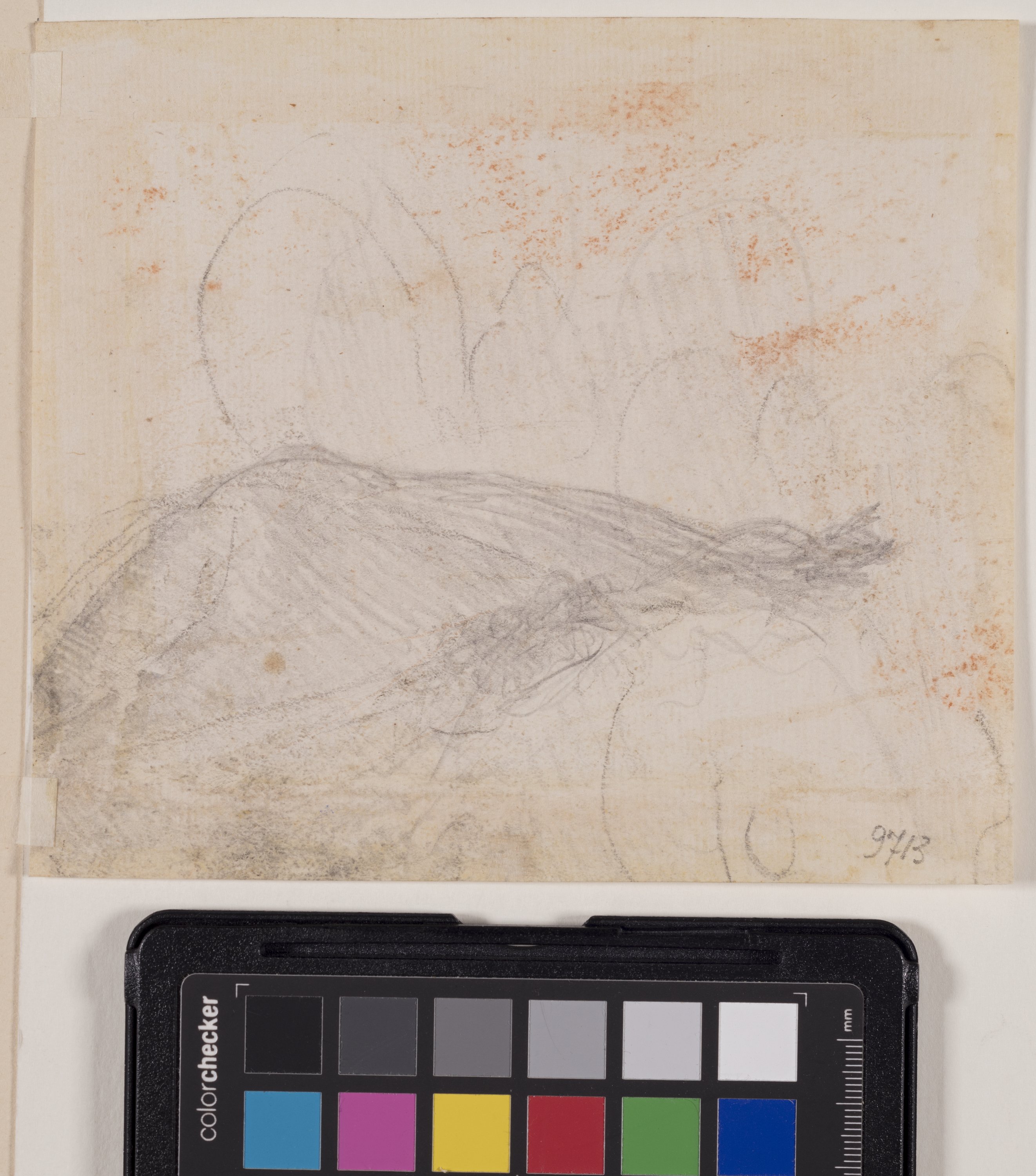 recto: Il disegno rappresenta uno studio di mano destra femminile, barccio appena accennato, piegata sul gomito verso l'alto. verso: Schizzo a matita indecifrabile, forse un monte