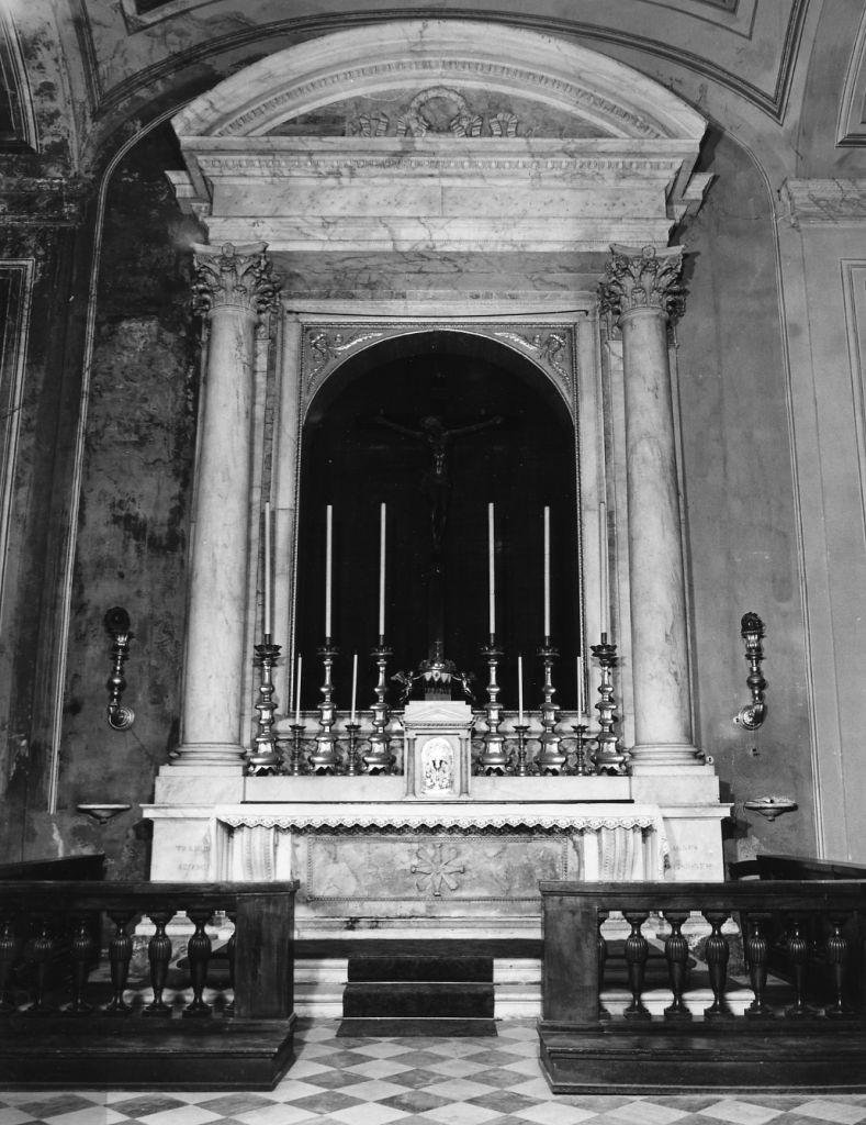 Balustra semicurvilinea, divisa in quattro pezzi, in legno di noce di color medio, costituita da anfore in parte baccellate, con piccoli plinti