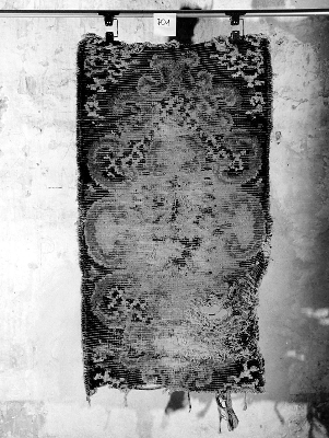 - NOTIZIE STORICO CRITICHE Il piccolo tappeto in esame è molto frammentario, lacerato e consunto, per cui la sua stessa leggibilità è compromessa. La ricca ornamentazione floreale e la vasta gamma che lo caratterizzava ne indica la probabile produzione inglese (cfr. M. Campana; M. Praz)