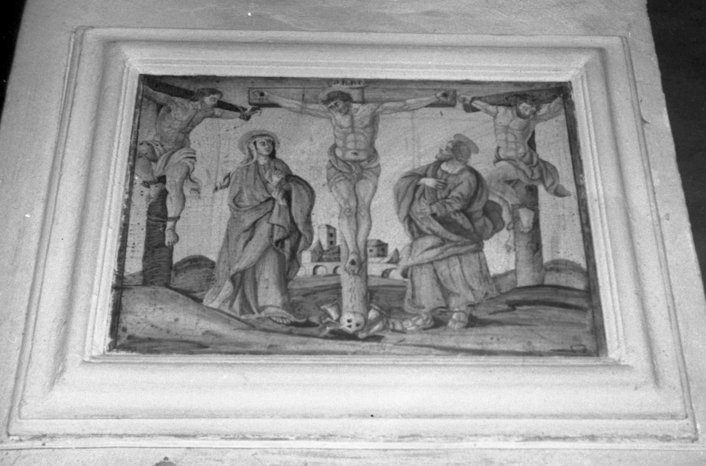 Personaggi: Cristo; Madonna; S. Giovanni Evangelista. Figure: ladroni