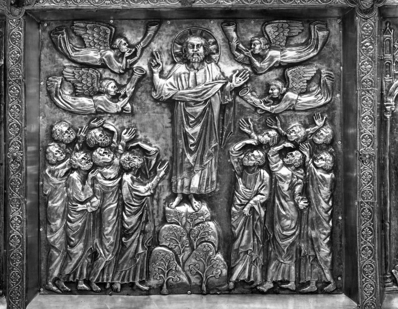 Soggetti sacri. Personaggi: Cristo. Figure: apostoli; angeli. Attributi: (angeli) corna. Fenomeni geologici: rocce. Vegetali: alberi