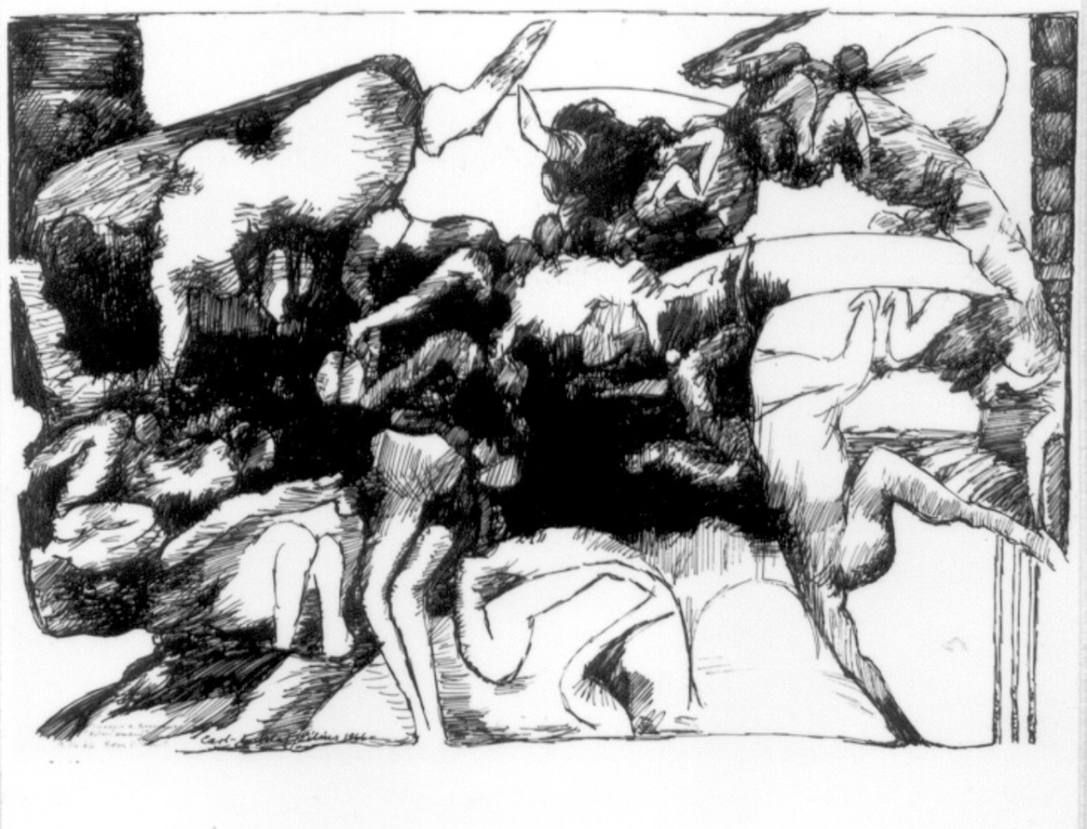 - NOTIZIE STORICO CRITICHE Non ha riferimento con alcuno degli episodi del "Decamerone" di Giovanni Boccaccio. "Ritmi umani n. 1,2,3" (cfr. schede 09/00126841 e 09/00126842) del finlandese Lilius, vuol essere un omaggio alle creature del "Decamerone". Il groviglio organico di corpi sembra riallacciarsi ad esperienze surrealiste (Masson, Ernest)