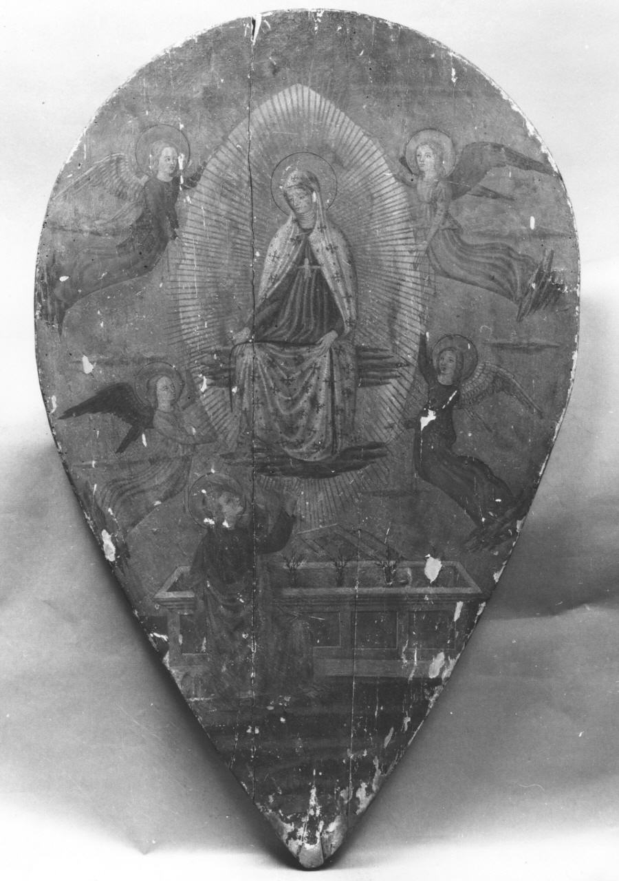 Soggetti sacri. Personaggi: Madonna; San Tommaso. Figure: angeli. Attributi: (San Tommaso) cintura. Oggetti: sarcofago. Vegetali