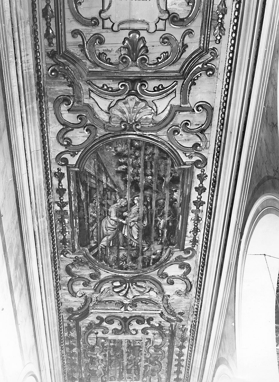 - NOTIZIE STORICO CRITICHE Secondo le notizie riferite da Lotti (1980, p. 371), Anton Domenico Bamberini avrebbe eseguito cinque dipinti ad olio con figure allegoriche femminili e composizioni floreali nel soffitto della navata centrale e i monocromi raffiguranti episodi della vita di Maria Vergine con simboli e motti mariani nei soffitti delle navate laterali. Un confronto con le opere certe del pittore induce a confermare tale attribuzione solo per i dipinti dei soffitti laterali