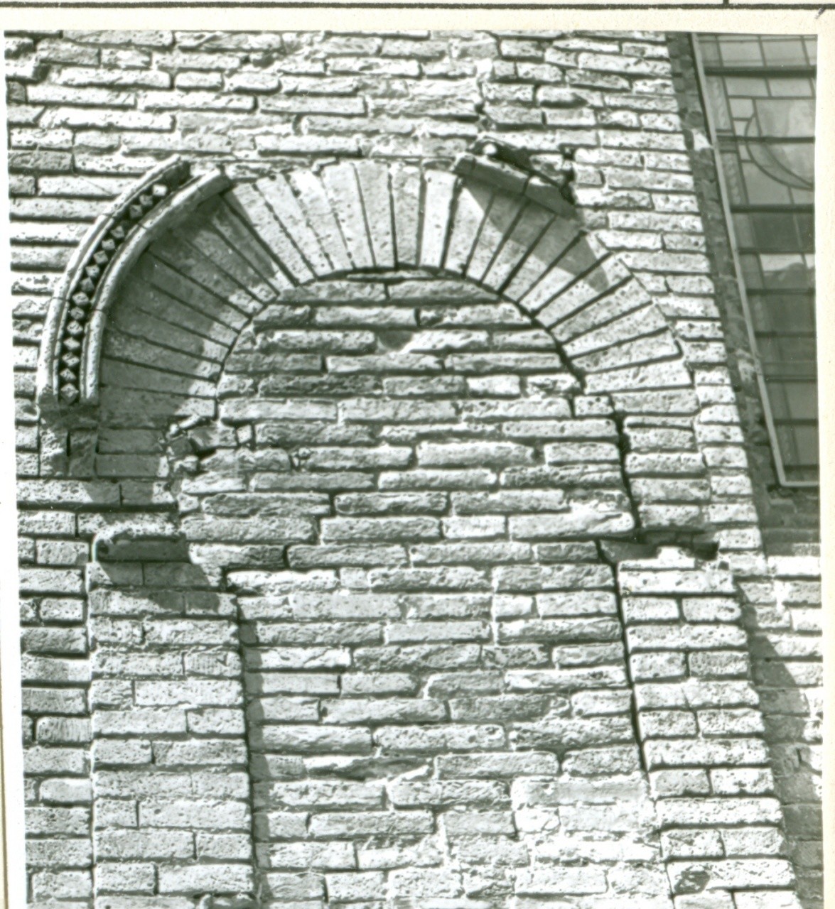 All'interno di un arco s tutto sesto, di cui rimangono pochi frammenti, decorazione a giorno con motivi di losanghe