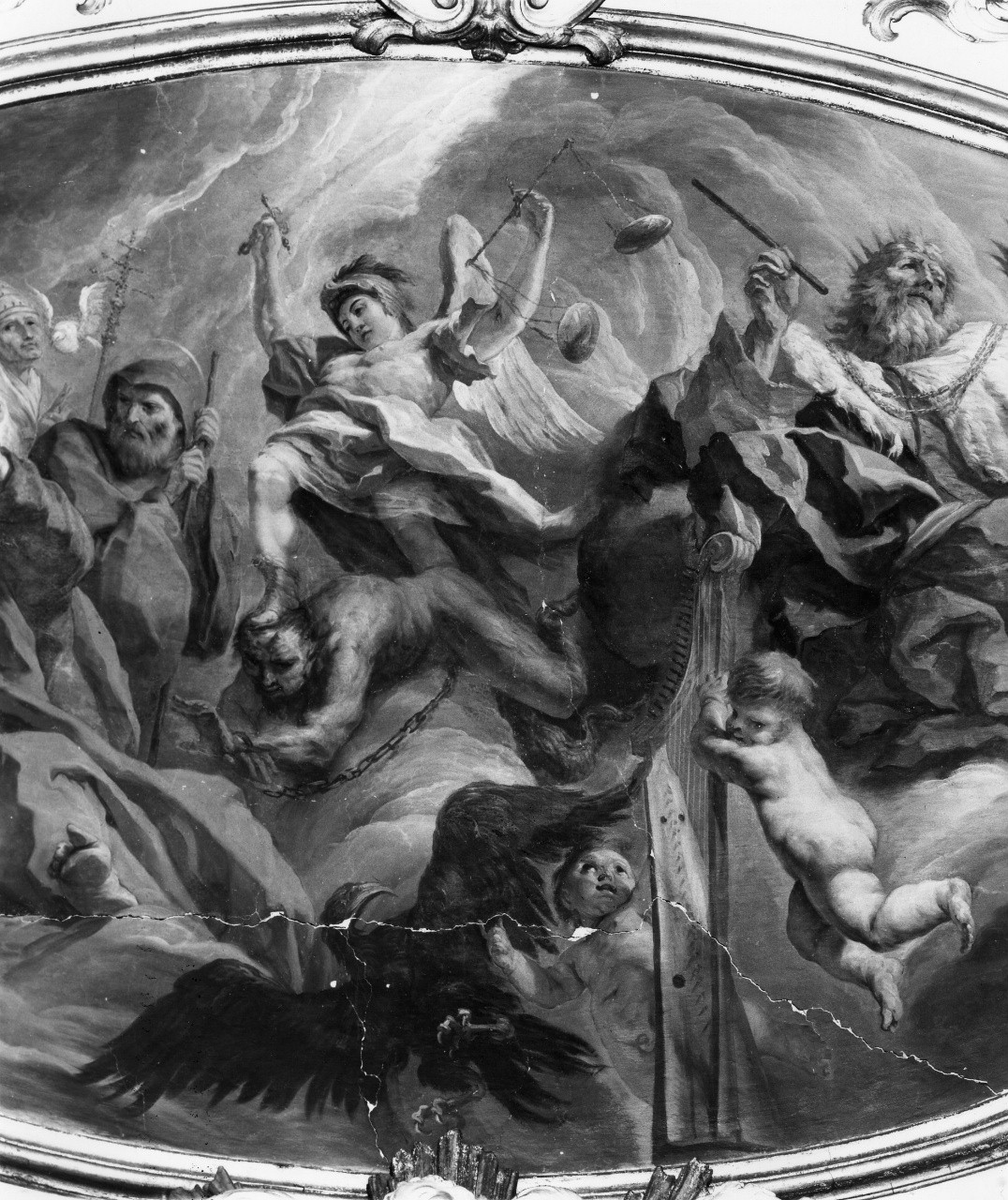 Soggetti sacri. Personaggi: San Michele Arcangelo; San Giovanni Evangelista; Vergine; San Carlo Borromeo; Santa Cecilia. Personaggi: Gregorio Papa; Demonio; Re David; Re Salomone. Attributi: (San Michele Arcangelo) spada; bilancia