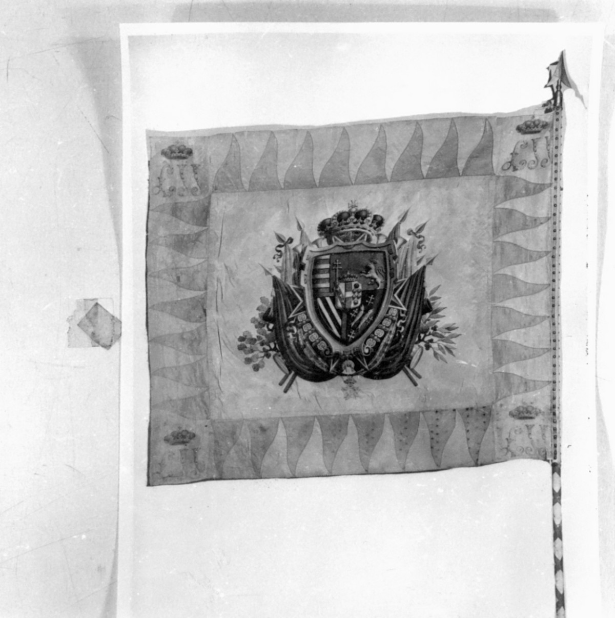 - NOTIZIE STORICO CRITICHE Bandiera a doppia faccia, su un lato lo stemma granducale con cifre di Leopoldo II; su laltro unimmagine dellImmacolata