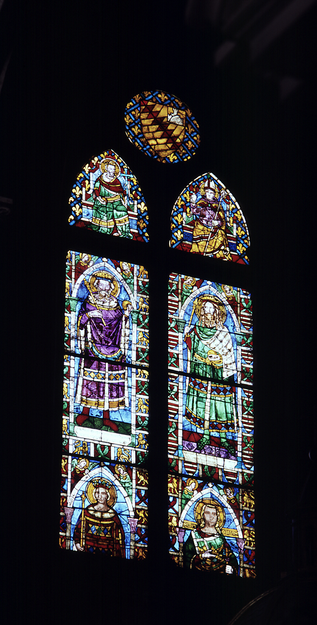 - NOTIZIE STORICO CRITICHE La vetrata, che appare restaurata nelle due figure in basso, presenta caratteri stilistici molto simili a quelli dell'altra vetrata della cappella Bardi, eseguita probabilmente nello stesso tempo. Per il Marchini entrambe le vetrate rientrano nell'orbita di Taddeo Gaddi, ma in epoca piuttosto avanzata e mortificate da un decorativismo di tipo orcagnesco. I due autori, Ubaldino del Vetro e Gherardo Pillecti, erano frati