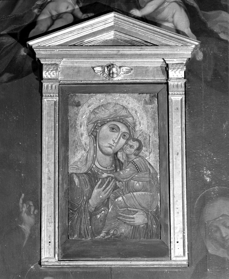 Si tratta del tabernacolo che fa da cornice alla Madonna cosidetta 'dei Mantellini'. La parte superiore è a timpano; nel fregio è raffigurato un cherubino