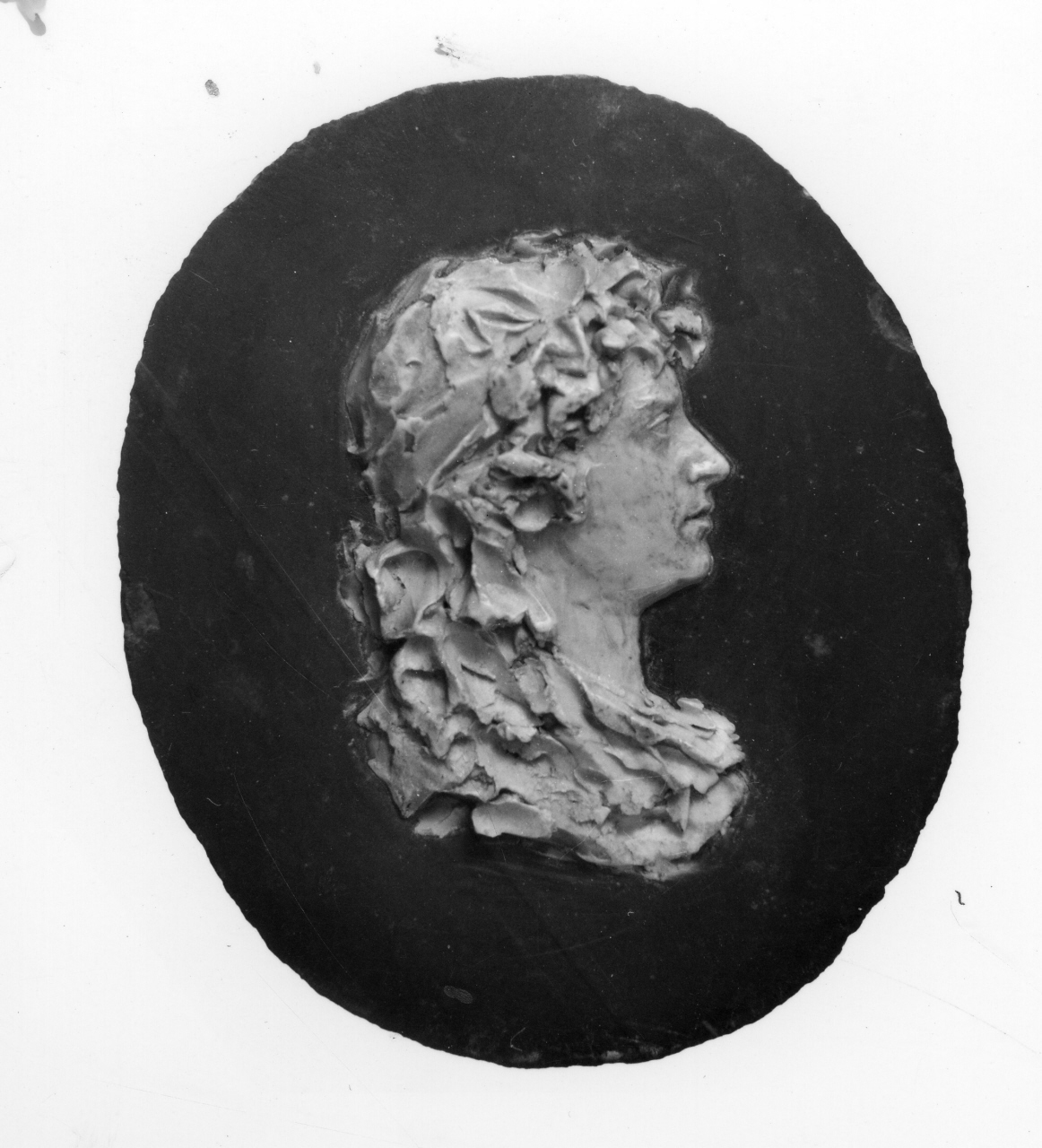 Rilievo in cera rosa su fondo ardesia raffigurante ua testa femminile in profilo a destra allo stato di abbozzo