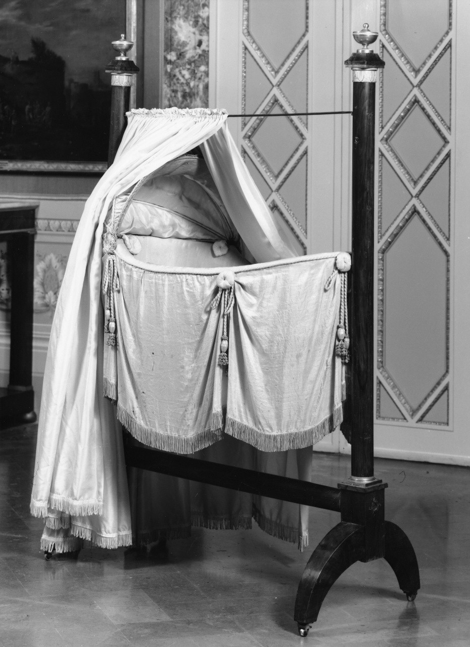 - NOTIZIE STORICO CRITICHE La culla, di fattura molto semplice, è completa di materasso e cuscino entrambi di raso. Eseguita all'inizio dell'Ottocento la culla probabilmente fu adoperata - come suggerisce K.A. Piacenti - per i bambini Montenovo, nati da Maria Luigia e da Adamo Adalberto di Neipperg.i