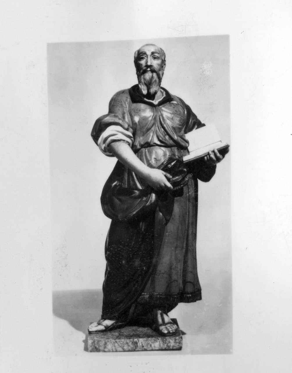 - NOTIZIE STORICO CRITICHE La scultura, come le altre tre statuette di Evangelisti, del Museo degli Argenti, doveva essere posta all'interno di un'edicola in pietre dure da collocare nel ciborio destinato alla Cappella dei Principi in S. Lorenzo. Le prime notizie sull'esecuzione delle statue risalgono al 1602-03, quando Antonio Susini e LOdovico Cigoli eseguirono i modelli in cera che CRistoforo Gaffurri avrebbe dovuto tradurre in pietre dure. Non fu tuttavia quest'ultimo a realizzare le statuette poiché nel 1605 tale compito risulta asseganto ad Orazio Mochi che ugualmente non portò a compimento l'opera. Infatti nel 1639 Stefano e Francesco Mochi, figli di Orazio, venivano pagati per aver lavorato ai modelli degli Evangelisti che risultano portati a termine solo nel 1659. Le quattro statue furono conservate inizialmente nella Galleria dei Lavori, per essere poi collocate, nel 1782, nel Gabinetto delle Gemme agli Uffizi