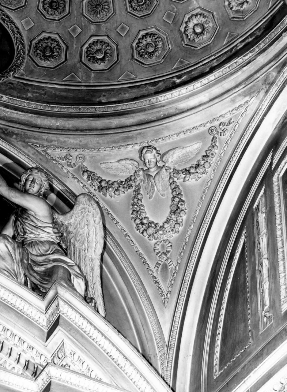Cupoletta a lacunari ottagonali con rosoni, terminanti in un occhio centrale raggiato, coronato da ghirlanda. Finestrella sopra l'altare, con incorniciatura a motivi vgetali. Nei pennacchi un cherubino regge un festone di fiori e frutta entro incorniciatura a foglie di quercia