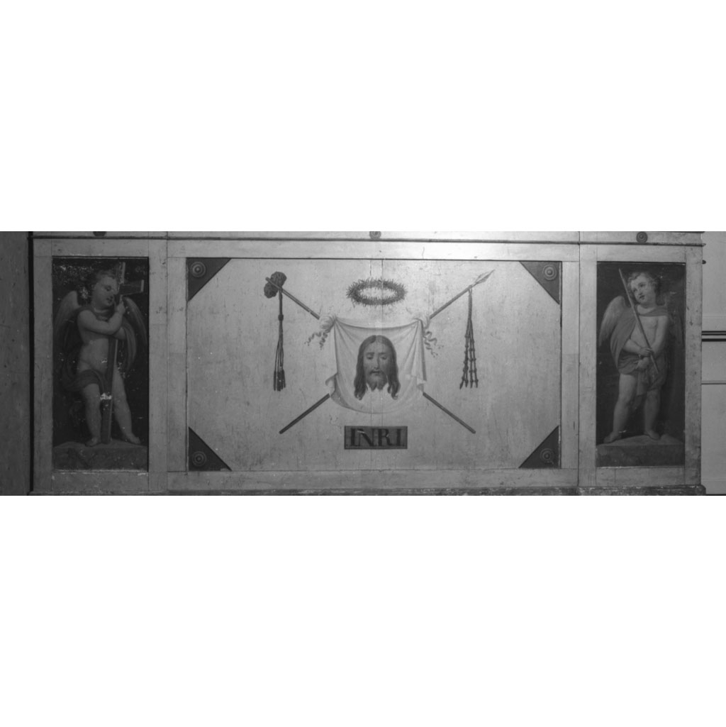 Paliotto d'altare in legno dipinto a tempera raffigurante al centro, su fondo color avorio, il volto di Cristo impresso su panno di Veronica, appeso ad una lancia incrociata ad un bastone con spugna e frusta. Sopra la Veronica è la corona di spine. Ai lati due angioletti in piedi coperti da drappi rossi ed appoggiati uno ad una croce e l'altro ad un bastone