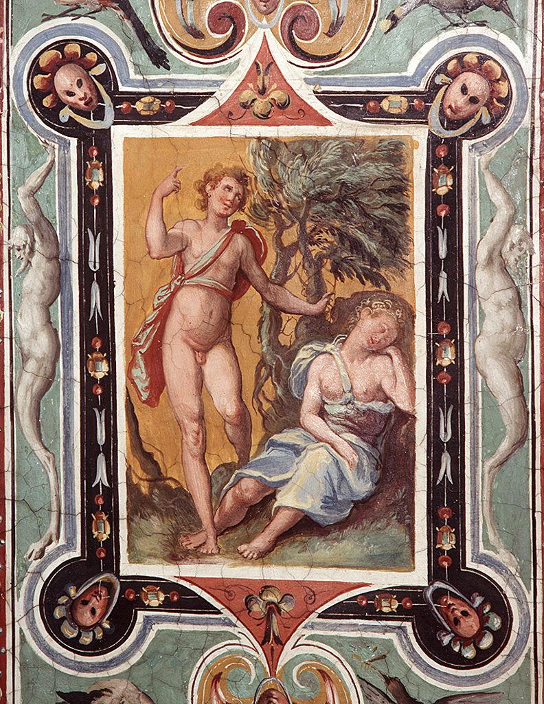 - NOTIZIE STORICO CRITICHE La raffigurazione narra l'episodio in cui Bacco, giunto nell'isola di Nasso, viene in aiuto ad Arianna, figlia del re cretese Minosse abbandonata da Teseo. L'iconografia tratta dalle "Imagines" di Filostrato, ricorda appunto Arianna dormiente all'arrivo del Dio; diversa è la narrazione di Ovidio
