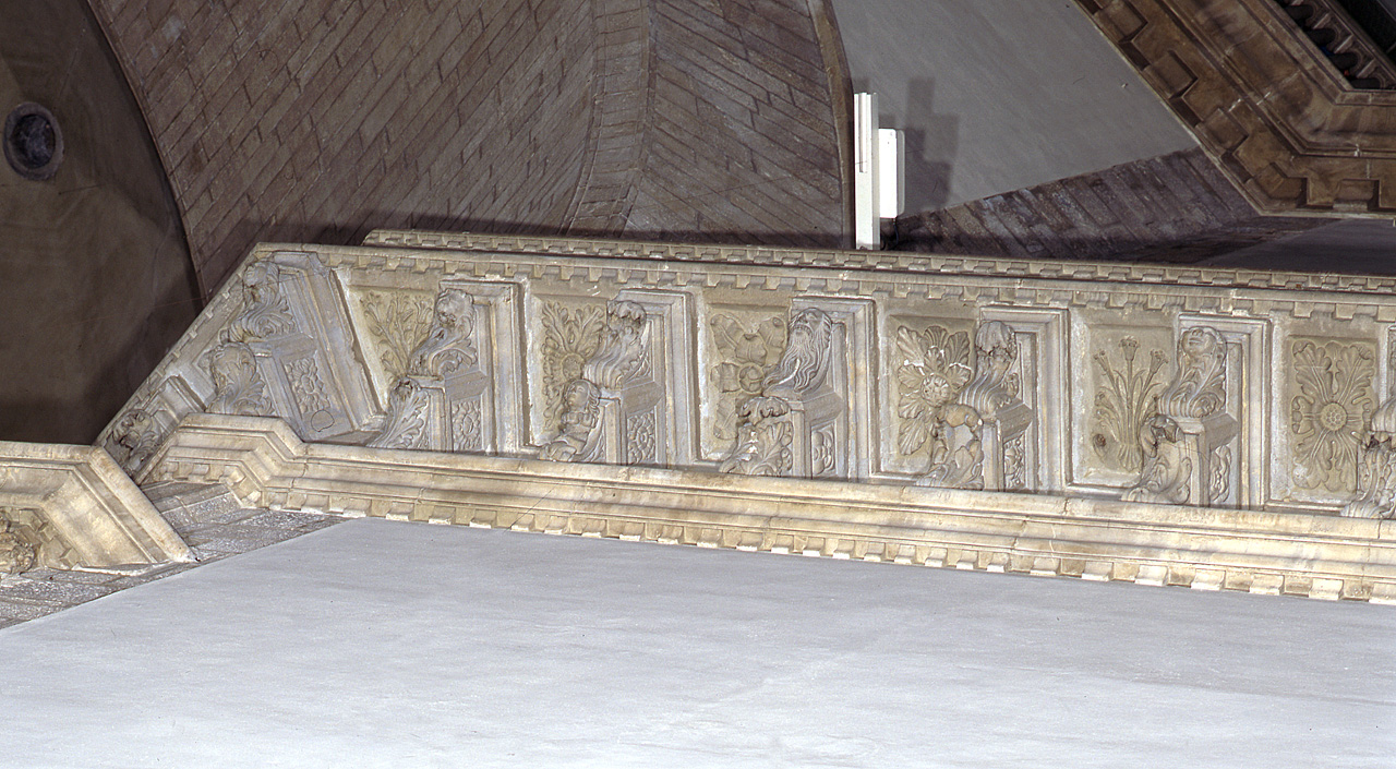 Decorazioni: dentelli, modanature, fiori, foglie d'acanto, rosette, vaso