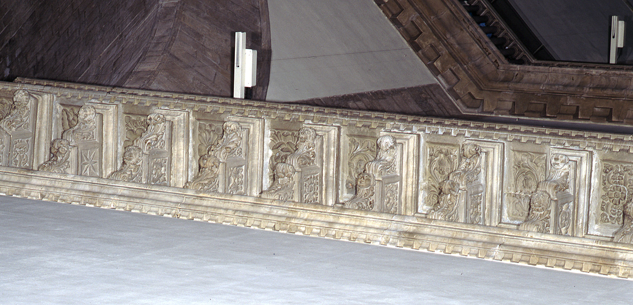 Decorazioni: dentelli, modanature, fiori, foglie d'acanto, vaso