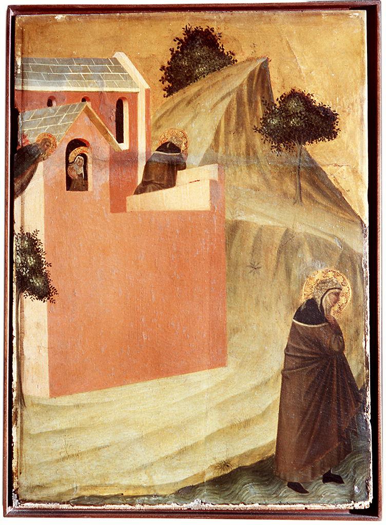Personaggi: beata Umiltà; Santa Perpetua; Cristo. Abbigliamento religioso. Architetture: convento. Paesaggi: fiume; monte. Vegetali: alberi