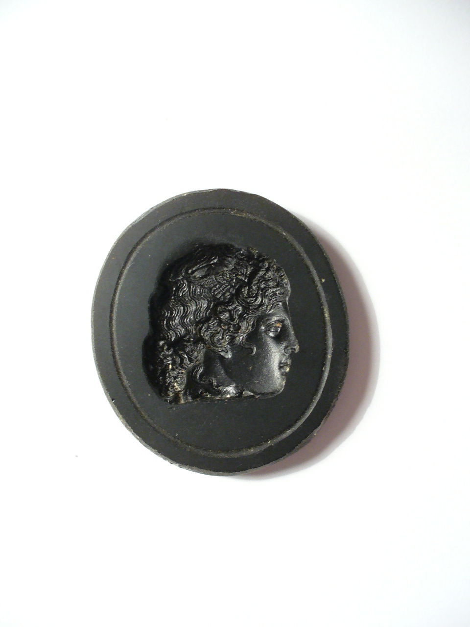 - NOTIZIE STORICO CRITICHE L'esemplare fa parte un gruppo di oltre seicento stampi in vetro per la produzione di impronte commissionati all'incisore di gemme e antiquario romano Bartolomeo Paoletti, che li ricavò dai cammei e dagli intagli più importanti della collezione glittica dei granduchi di Toscana (per ulteriori notizie si rimanda alla scheda OA 09/00649739). In particolare, la matrice qui considerata è desunta da un cammeo conservato presso il Museo Archeologico Nazionale di Firenze (inv. n. 14512). L'originale è commentato da Tommaso Puccini nel suo catalogo manoscritto dedicato alle gemme riprodotte dal Paoletti: "Onice. Testa di Medusa con ali e capelli raccolti in forma di corimbo sopra i serpenti che le si annodano in fronte Lavoro di egregio stile in un bellissimo bianco compatto sopra fondo cristallino. È però mancante del collo e supplica in oro nella sommità della testa" (BdU, ms. 47, n. 77 - 1065)