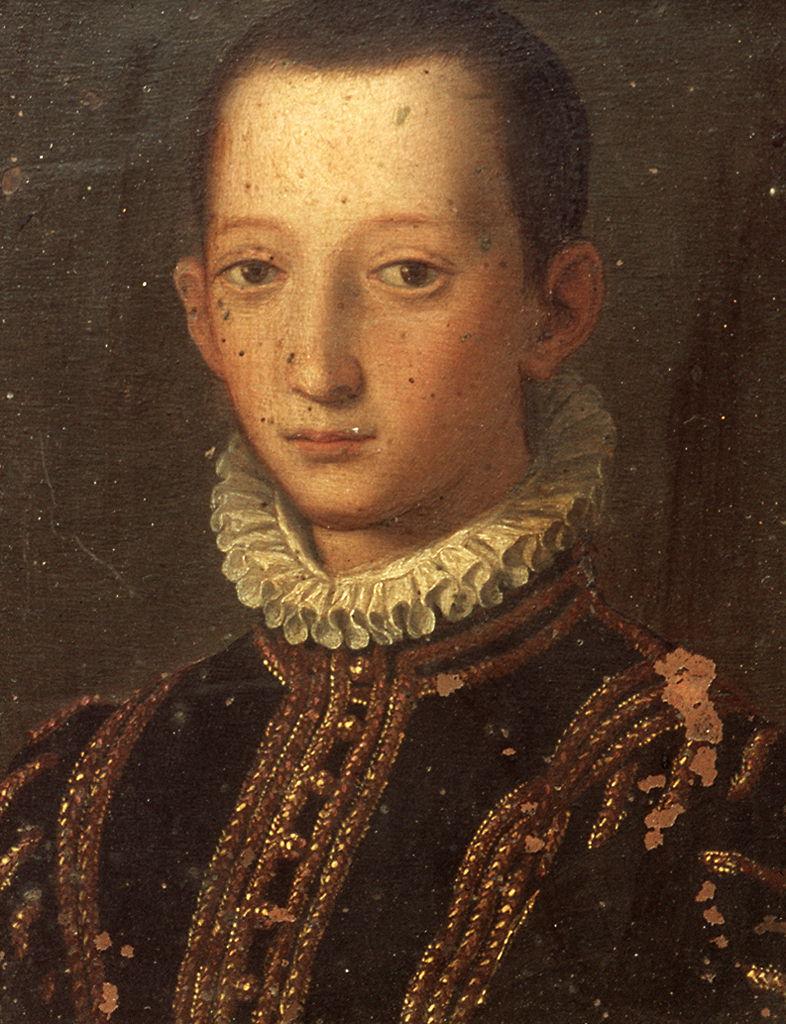 Ritratti: Pietro di Cosimo de' Medici. Abbigliamento: giubba ricamata; gorgiera