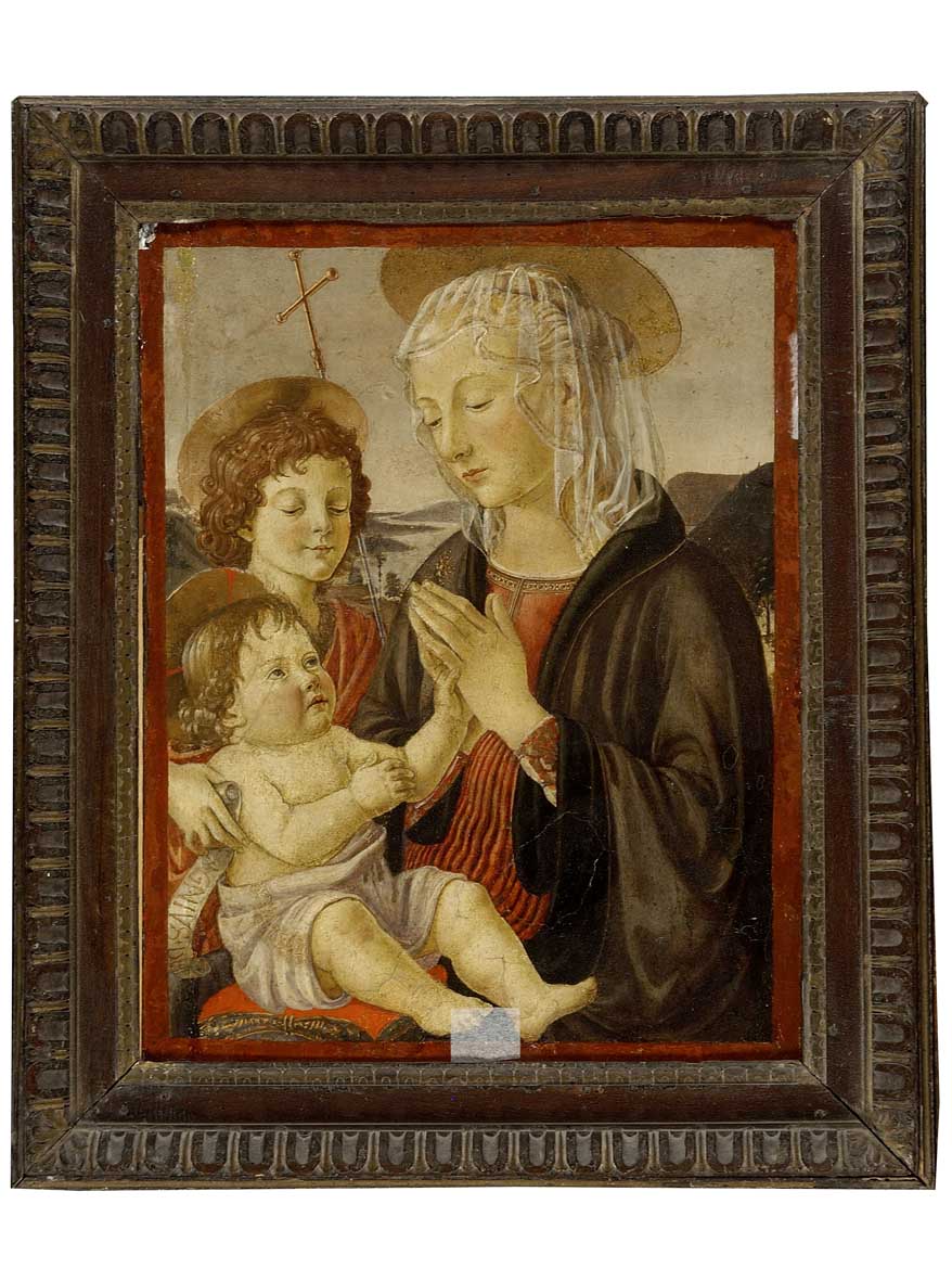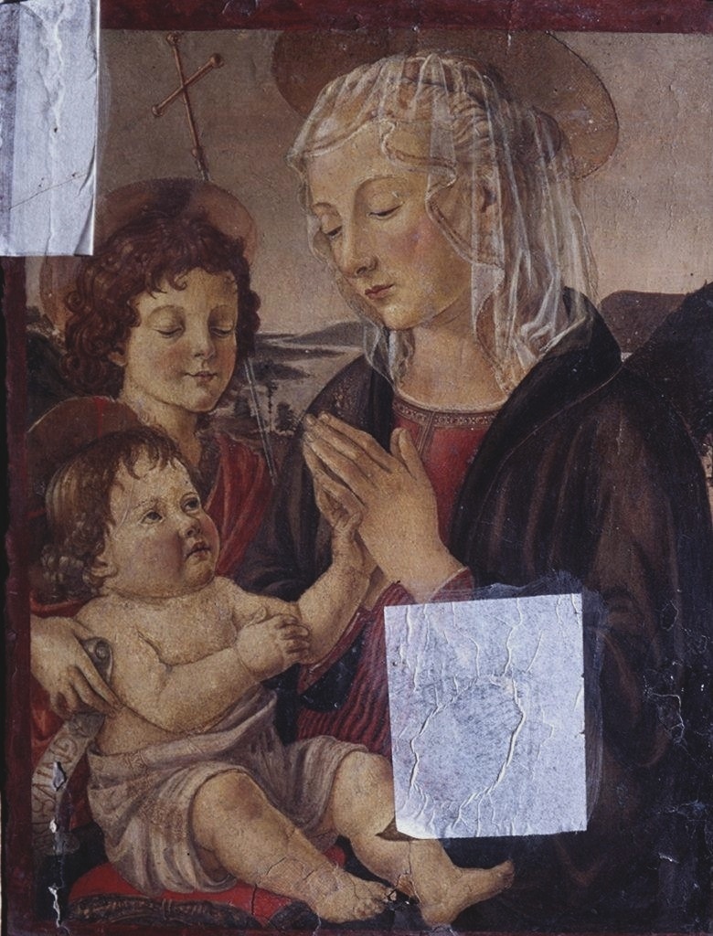- NOTIZIE STORICO CRITICHE Il dipinto, conservato presso i depositi del Soffittone di Palazzo Pitti, raffigura la Madonna con Gesù bambino e San Giovannino. Dall'analisi stilistica risulta che la tavola sia stata eseguita da artista fiorentino, molto vicino alla maniera di Lorenzo di Credi