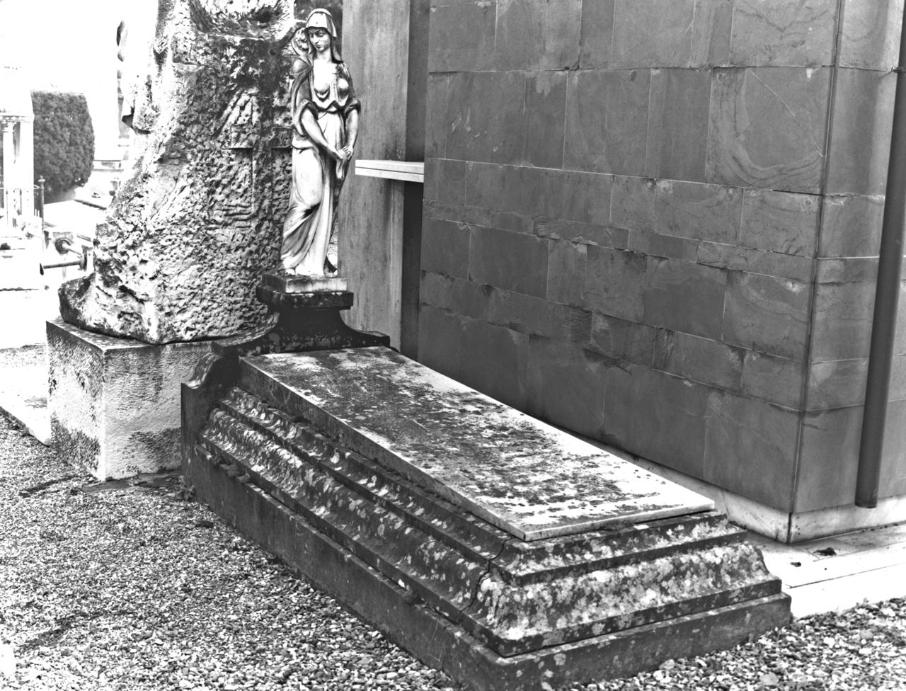 - NOTIZIE STORICO CRITICHE Monumento sepolcrale della famiglia Gasperini: Gustavo Gasperini era un famoso idrologo. L'idrologia è una branca della medicina che studia l'uso terapeutico delle acque minerali, dei fanghi e delle grotte termali. La statua eretta per questo monumento può avere qualche riferimento con la professione del defunto. La figura, dalle delicate proporzioni, pur priva di un elevato pregio artistico, non è neppure da ascrivere tra la produzione seriale di tipo cimiteriale. Il monumento è databile attorno al 1929, data di morte del Gasperini, primo defunto della famiglia. (Caldini G., "Scultura italiana del XX secolo", Il Fiore, Firenze, 1984)