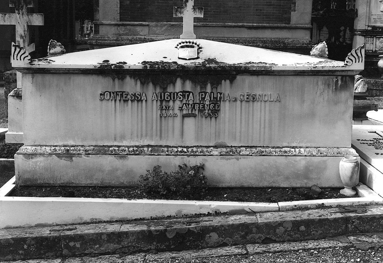 - ISCRIZIONI fronte del sarcofago - CONTESSA AUGUSTA PALMA DI CESNOLA / NATA LAWRENCE / 1844 - 1933 - lettere capitali/ numeri arabi -