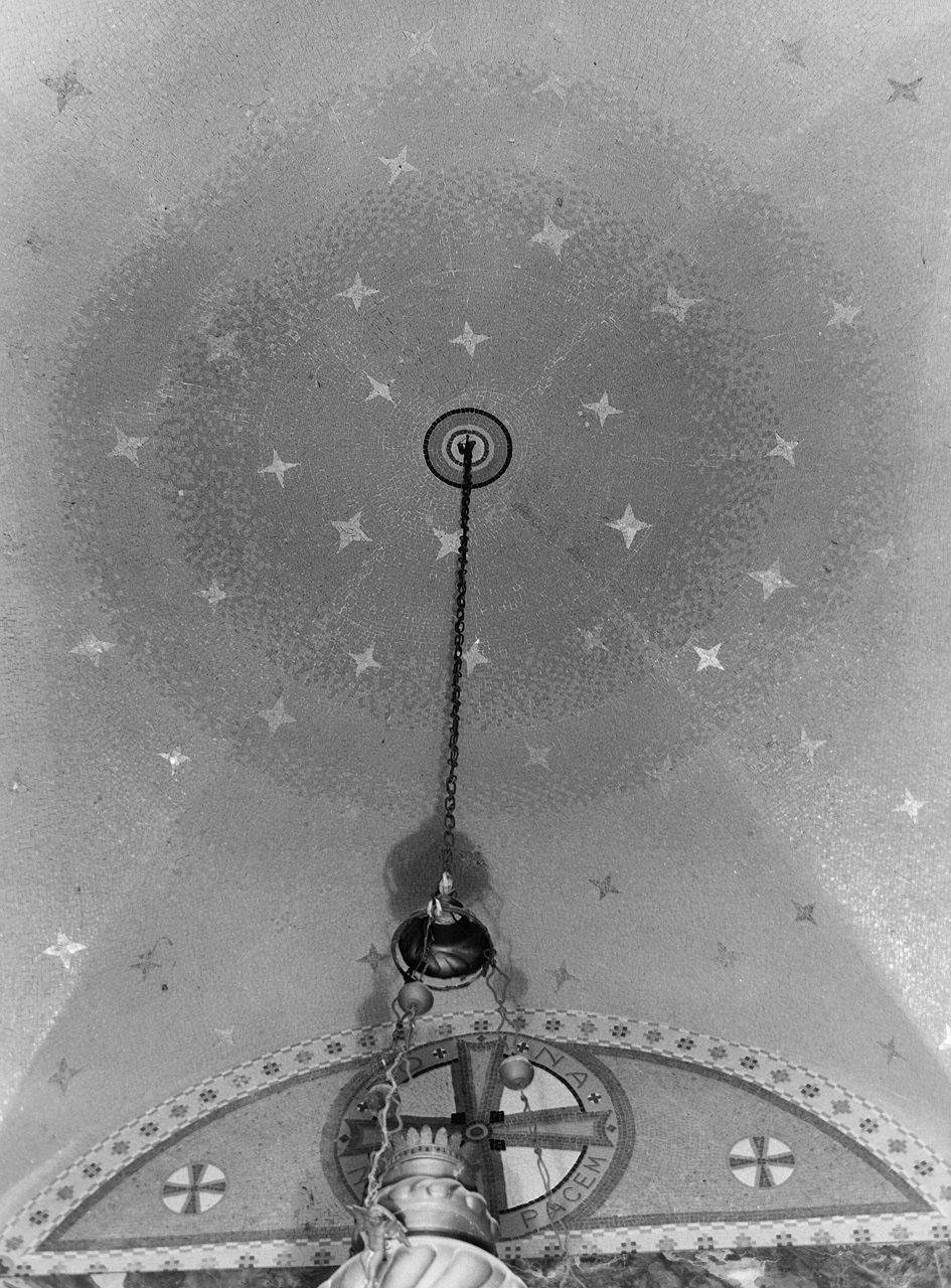 Sulla volta cielo stellato. Nelle lunette un clipeo centrale con croce patente ed iscrizione e due clipei più piccoli, agli angoli, con croce patente