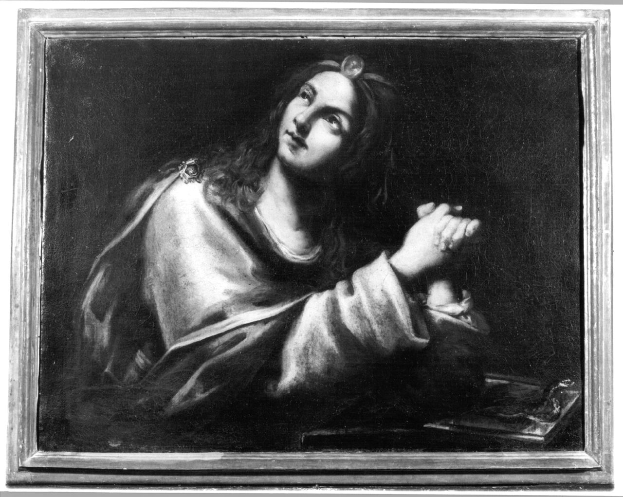 - NOTIZIE STORICO CRITICHE cfr. scheda n. cat. gen. 0900367955.La giovane donna con lo sguardo rivolto verso l'alto, le mani giunte e gli attributi dei due serpenti e dello specchio, indicano la personificazione della virtù cardinale della Prudenza. Nell'inventario dei beni della villa, conservato presso l'archivio della Soprintendenza ai Beni Artistici e Storici di Siena e Grosseto, il dipinto è attribuito a Domenico manetti (Siena 1609-1663); tuttavia il morbido impasto cromatico e gli effetti luministici vibranti e pastosi inducono a datare l'opera alla seconda metà del XVII secolo e a collegare l'autore di questo dipinto e del suo pendant (cfr. scheda n. cat. gen. 0900354121) ad un artista che ha meditato sull'opera di Bernardino Mei (Siena 1612- 1676)