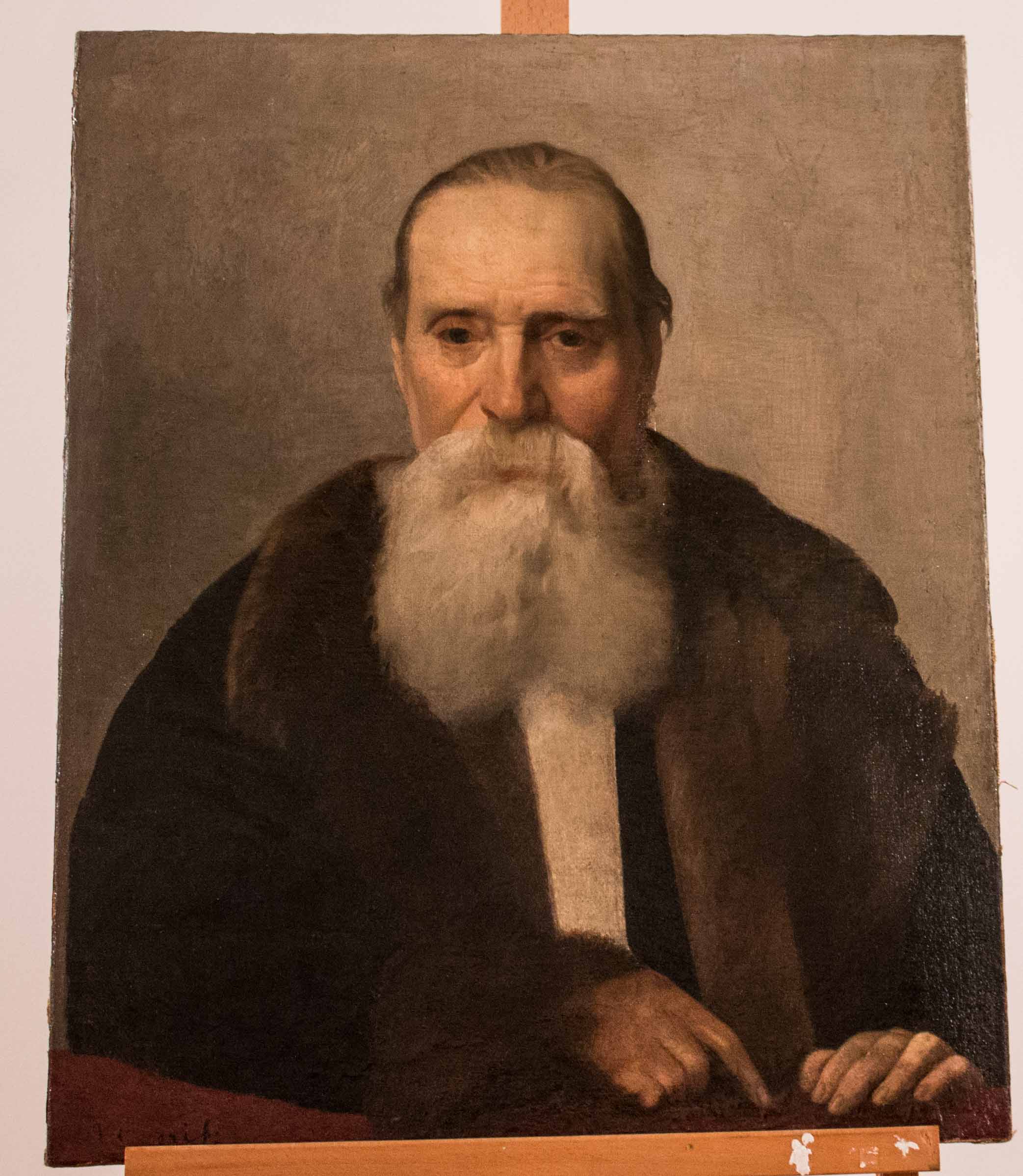• NOTIZIE STORICO CRITICHE Ad oggi non ci sono informazioni circa la provenienza e la paternità dell'opera, nè sull'identità del personaggio ritratto. Possiamo, tuttavia, ipotizzare, dopo accurati confronti effettuati nei repertori iconografici cittadini (raccolta Minutelli, Raccolta Iconografica, cass. n. 23, n. 75), che si tratti di Nicola Ullacacci "insegnante di lingua greca, disegno e declamazione, molto amante delle patrie cose" (Wiquel 1976-1985, p. 597), nato nei primi anni dell'Ottocento. La datazione tarda ipotizzata è riferibile sia ai modi pittorici del ritratto che all'età anziana del personaggio raffigurato