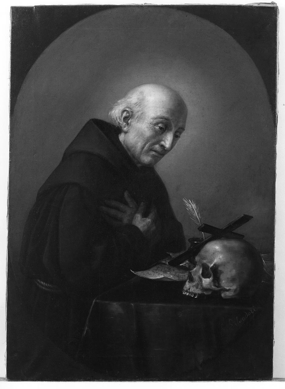 - NOTIZIE STORICO CRITICHE Il dipinto, proveniente dal convento francescano di San Leone a San Gaggio,raffigura un santo francescano, ma i suoi generici attributi (teschio, crocifisso, libro) non permettono di identificarlo con un personaggio specifico. L'opera è firmata da un certo F. Salvadori di cui non si ha notizia nei principali repertori di pittura. L'artista rivela in questo quadro la sua formazione accademica e il suo orientamento verso la pittura naturalistica che privilegia una intensa resa del reale e che ci permette di datare l'opera tra la fine dell'Ottocento e i primi decenni del Novecento