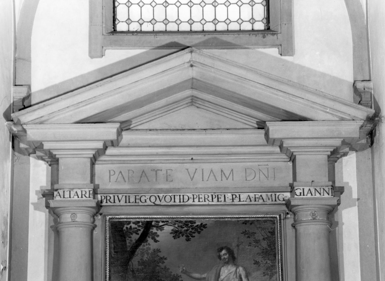 - ISCRIZIONI intera superficie - ALTARE PRIVILEG. QUOTID. PERPET. P(ER) LA FAMIG(LIA) GIANNI - lettere capitali - ad alveoli -