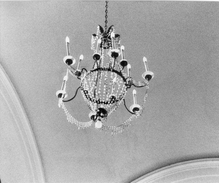 Lampadari costituiti da un cespo vegetale metallico sostenente mediante catenelle una corona liscia da cui si dipartono i bracci luminosi. Il tutto è decorato da fili di cristalli a goccia