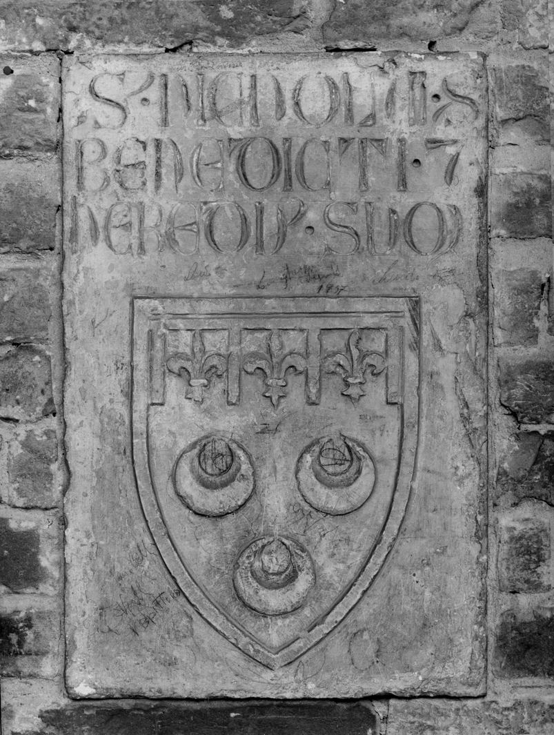 - ISCRIZIONI sulla lapide - S.(...)(...)(...)/BENEDICTI (...)(?) - caratteri gotici -