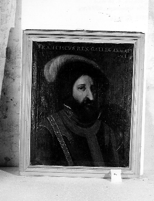 - NOTIZIE STORICO CRITICHE Nel 1620, il quadro si trovava già ad Artimino, in una saletta al primo piano della palazzina di Biagio Pignatta, insieme ai ritratti di Chiappino Vitelli, Carlo V, Giovanni della Valletta, Piero Strozzi, Lione Strozzi, Alessandro Farnese e Castruccio Castacani. Lì rimase fino al 1781, quando inoccasione della vendita della Villa ai Bartolommei, l'arredo fu disperso fra le altre dimore granducali. A Poggio a Caiano venne collocato, dopo una breve permenenza nella guardaroba, in una stanza del primo piano.Il ritratto di Francesco I, "in età d'anni quarant'uno vestito di ferro con penna bianca in testa", è copia della copia della serie dei ritratti diPaolo Giovio che Cristoforo Dell'Altissimo eseguì per Cosimo I prima del 1568. Questa copia, dunque, è stata eseguita fra questa data e il 1620