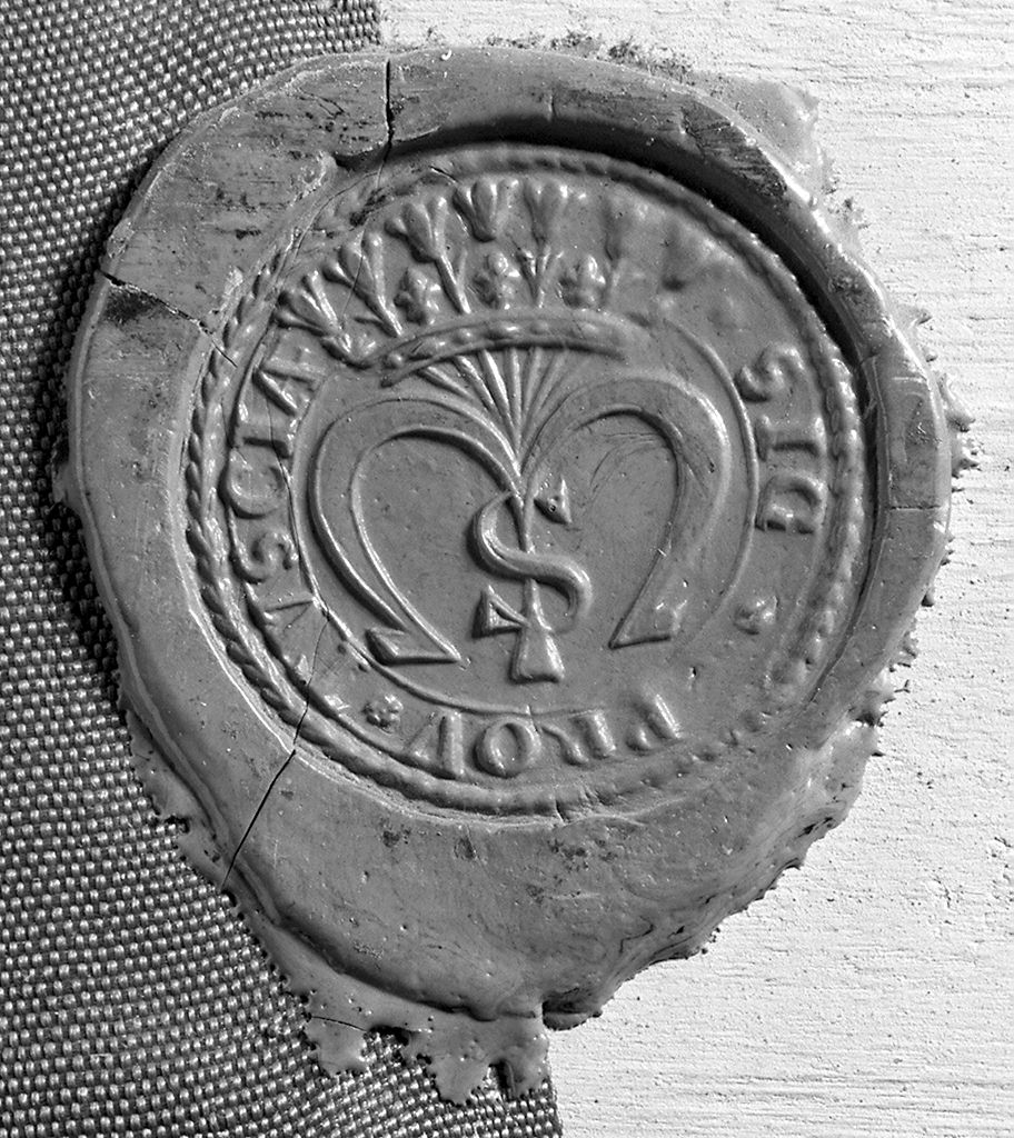 - ISCRIZIONI sul filatterio - Cothurnus S(ancti) Philippi Benitii Conf(ratelli) Ord(inis) Serv(orum) B(eatae) M(ariae) V(irginis) - corsivo -