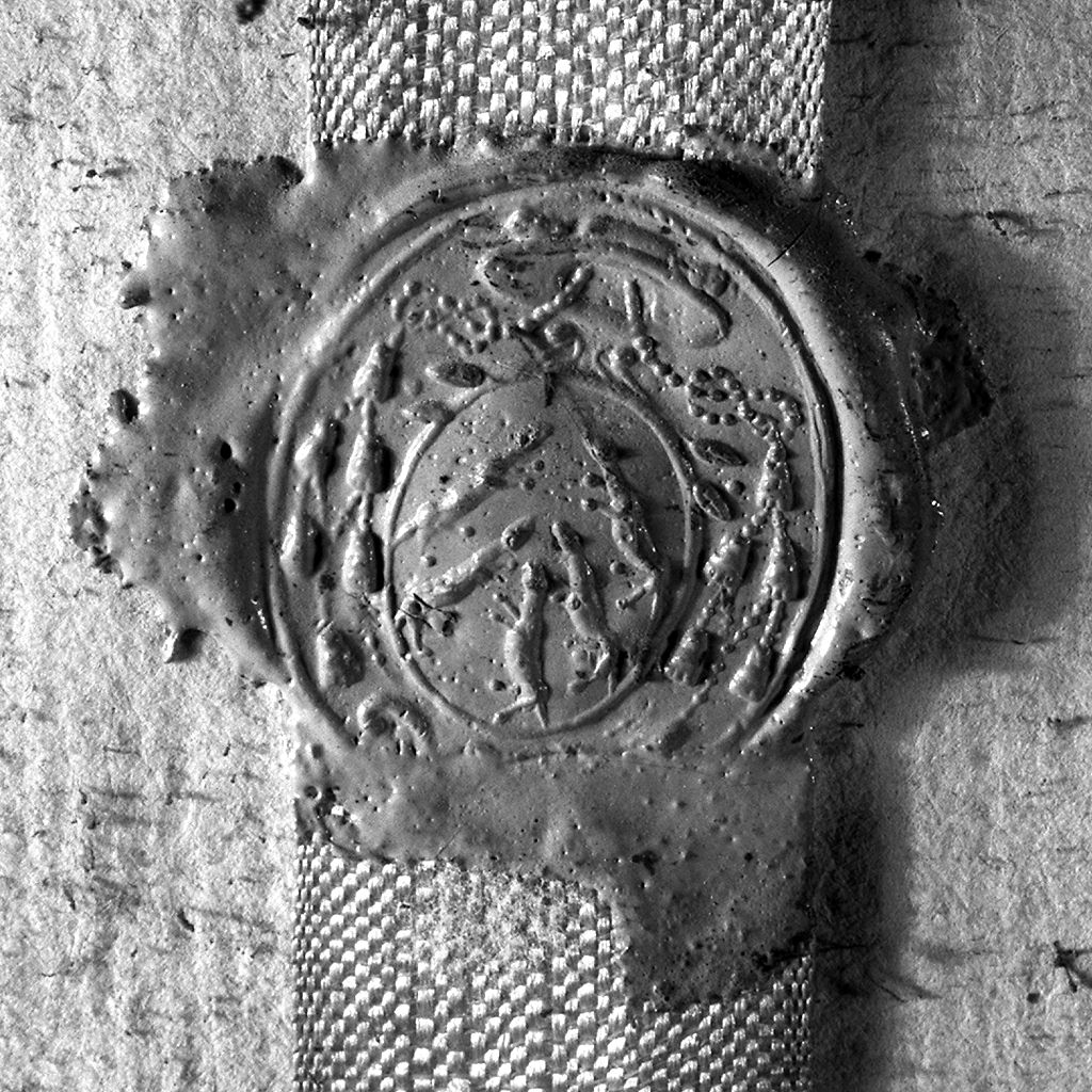 - ISCRIZIONI al centro, in un cartiglio - EX OSS(IBUS). S(ANCTI). IUSTINI MARTYR(IS) - lettere capitali -