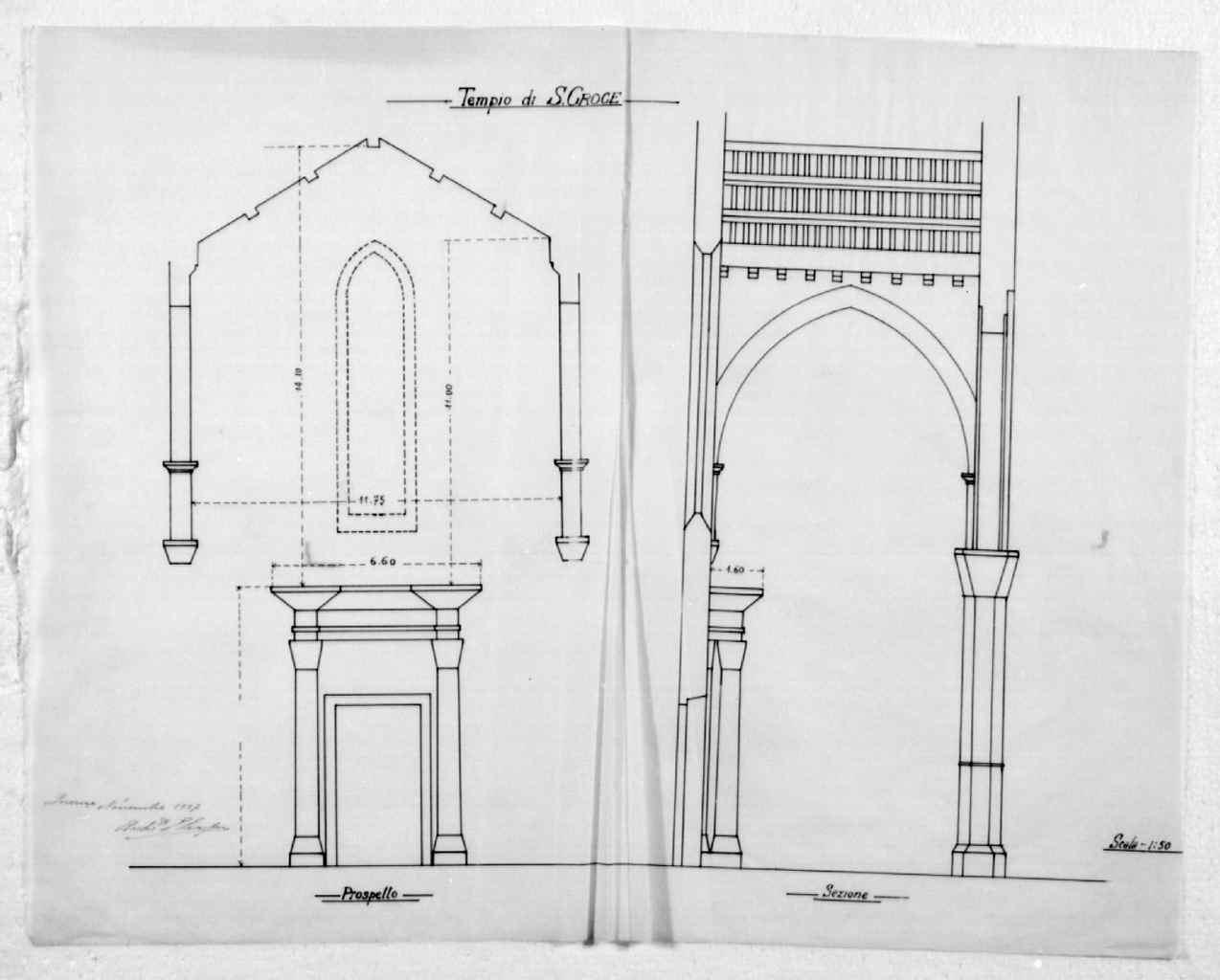 prospetto e sezione di una campata della chiesa di S. Croce a Firenze