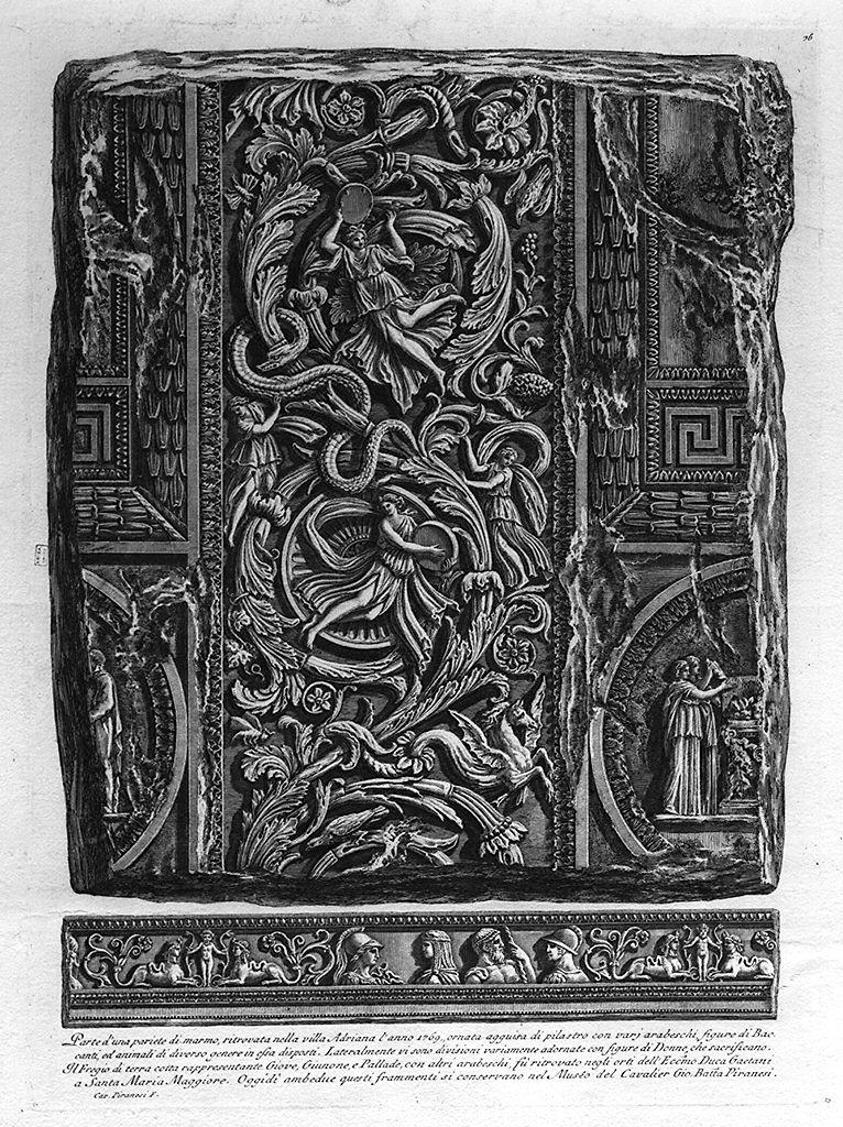 frammento con motivi ad arabesco e baccanti