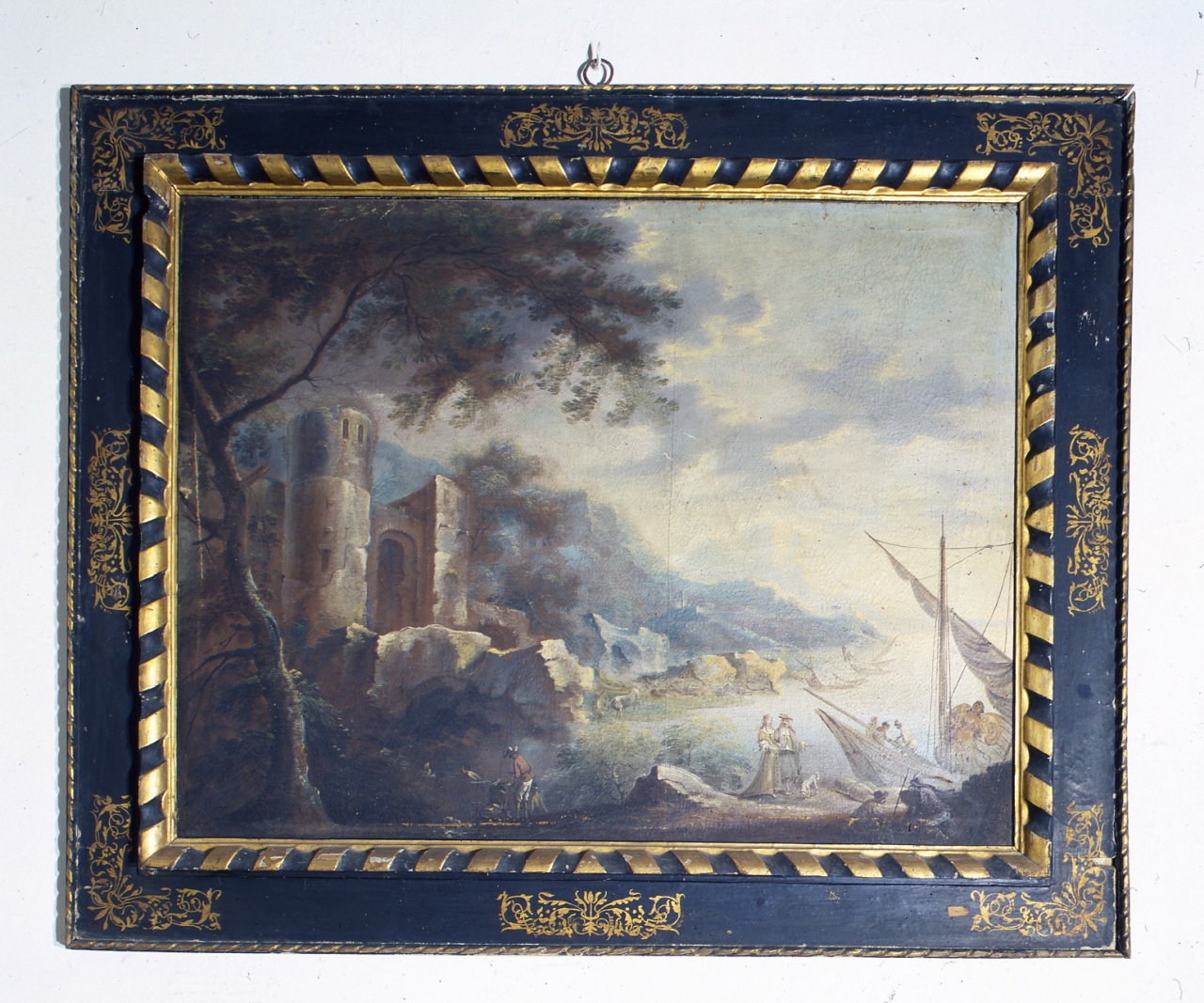 - NOTIZIE STORICO CRITICHE Il dipinto, eseguito sulla fine del Seicento, presenta talune affinità conle vedute costiere con navi nei pressi di fari e torrioni di difesa eseguite da Adriaen van der Cabel (1631-1705), un pittore olandese giunto in Italia nel 1660